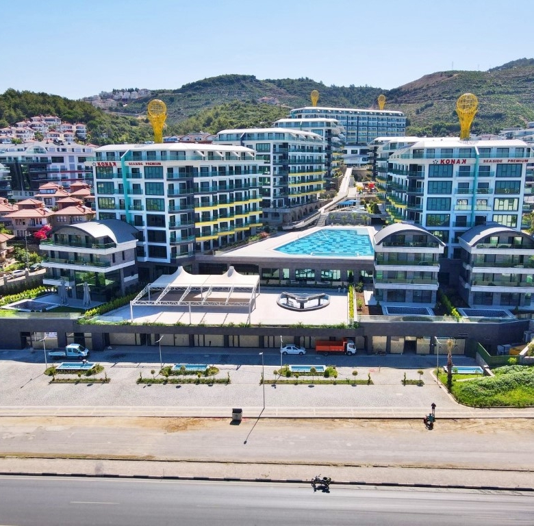 This Kargıcak beachfront luxury apartment in Konak Seaside Premium D-20 offers elegance in Alanya’s serene Kargıcak district. The unfurnished 2+1 apartment, spanning 115 m² on the 1st floor, features two bedrooms, two bathrooms, two WCs, and two balconies with sea views. It’s steps from the Mediterranean, truly beachfront. The complex includes open and indoor pools, an aquapark, jacuzzi, sauna, hammam, and fitness center. Built in 2023, this Kargıcak beachfront luxury apartment is 23 km from Gazipasa Airport and 140 km from Antalya Airport.
