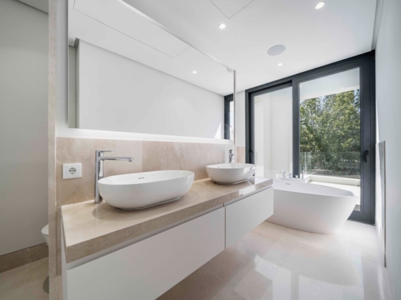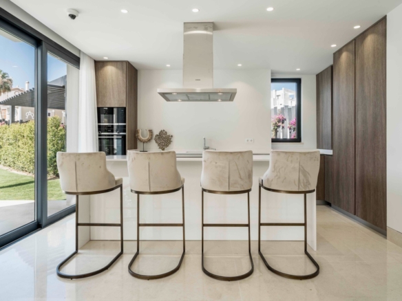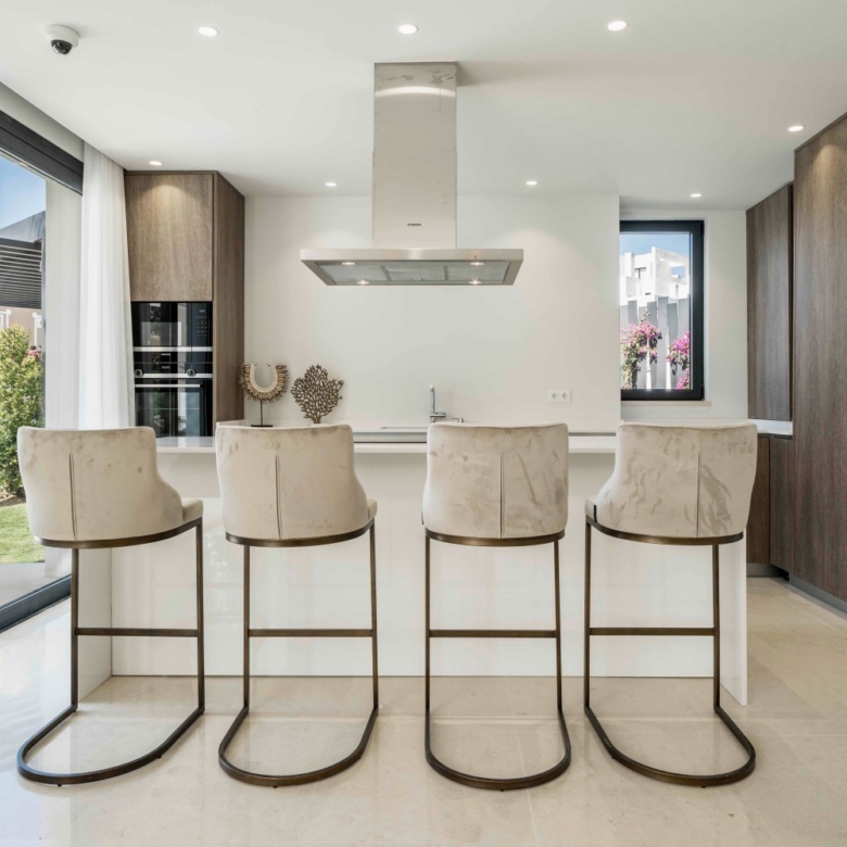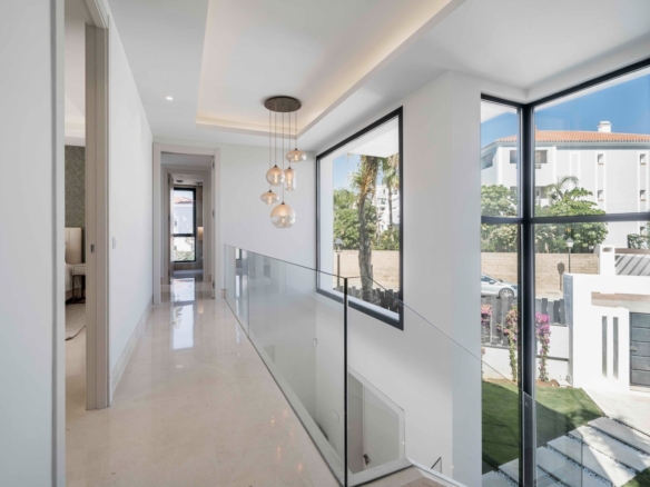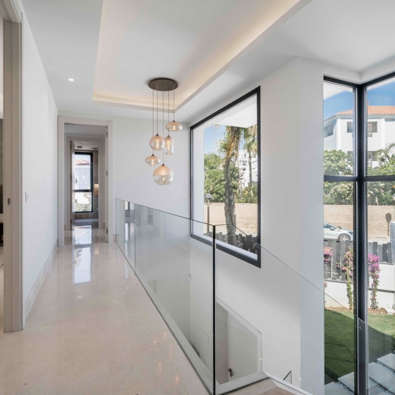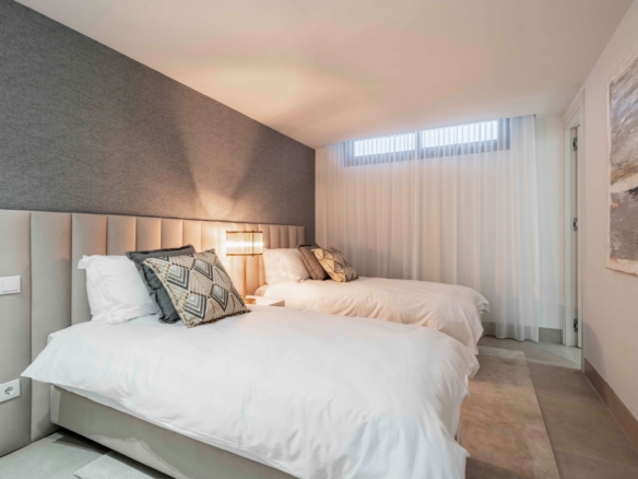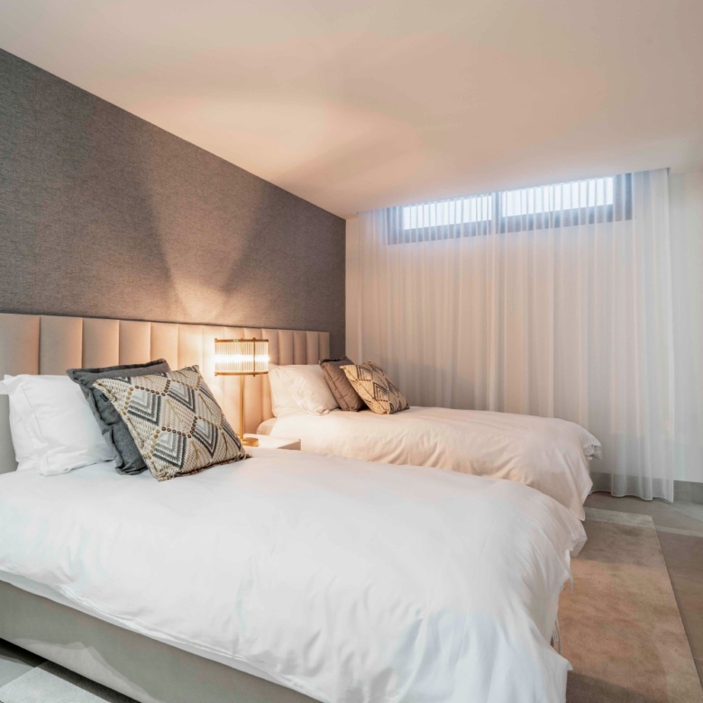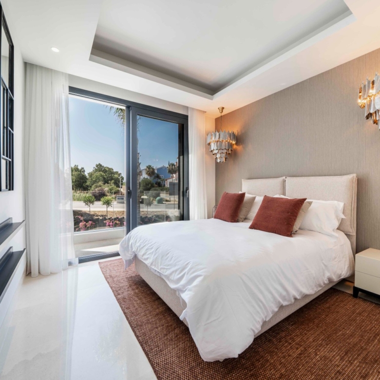 This luxurious new villa, located in the prestigious El Campanario Golf area between Marbella and Estepona, offers a rare chance to invest in one of the Costa del Sol’s most sought-after locations. Just 1 km from the beach and 10 minutes from Puerto Banús, the property enjoys a tranquil setting surrounded by upscale homes and lush greenery. Residents have access to a 9-hole golf course, wellness center with spa and gym, a Mediterranean restaurant, outdoor pool, coworking space, tennis and padel courts, and more.