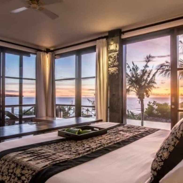 The top floor features indoor and outdoor living areas, soaring ceilings, air conditioned kitchen and dining area, as well as a stunning master bedroom with wall to wall glass windows revealing spectacular views over the pool and ocean. Further design highlights include the extensive use of distressed wood and locally-sourced limestone, marble and black granite throughout the generous 1000sqm of living space.
