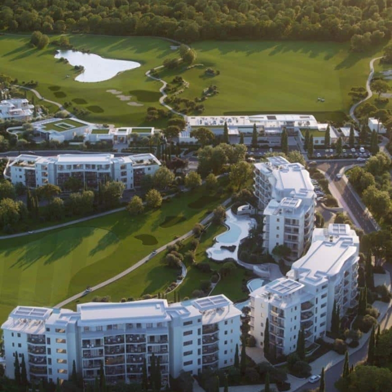 Modern riverside living, conceived with a keen eye for sustainable design and a seamless connection to the outdoors, is exemplified by this high-end architecturally designed residence in stunning surroundings. This spacious 3 bedroom apartment features a private garden of over 110m², perfect for relaxation and entertaining. Located in the heart of the resort, it’s just a minute’s walk from The Village and The Clubhouse. The elevated position offers unparalleled views over the golf course, Salt Lake, forest, and sea. These outstanding apartments provide articulated outdoor living spaces, while chic and practical interiors feature carefully crafted layouts that maximize interior spaces. Enjoy the luxury of a beautiful 30-meter swimming pool, complete with a sundeck and outdoor lounge.