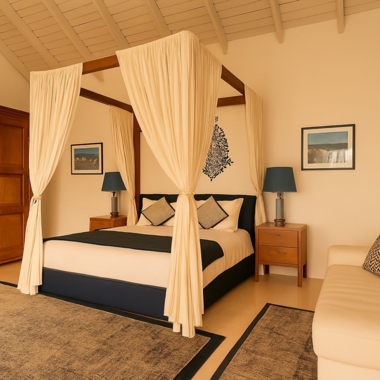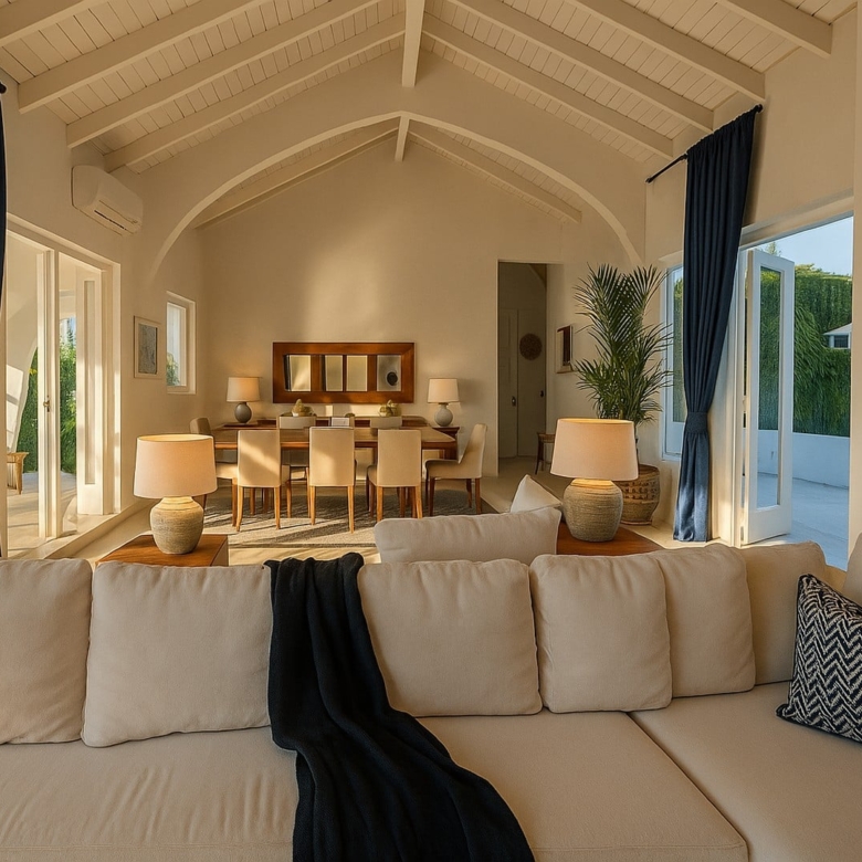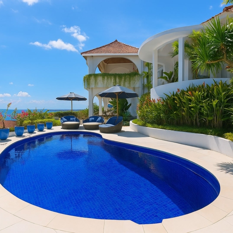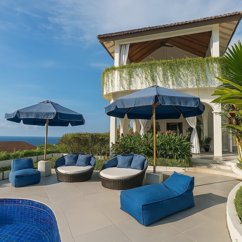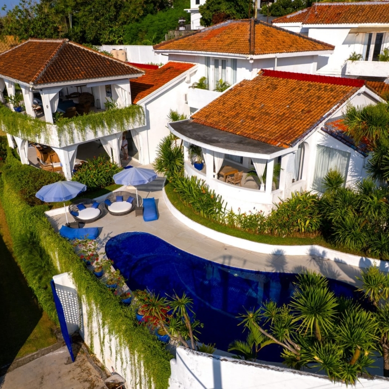 Painstakingly reimagined by its British-Indonesian owners, renowned for their work on Khayangan Estate and global luxury furniture brand Old Java, Villa Santorini blends elegant Mediterranean aesthetics with handcrafted Javanese teak accents, vaulted arches, and breezy white-and-blue interiors. No detail has been spared — this is a villa that lives and breathes light, air, and texture.