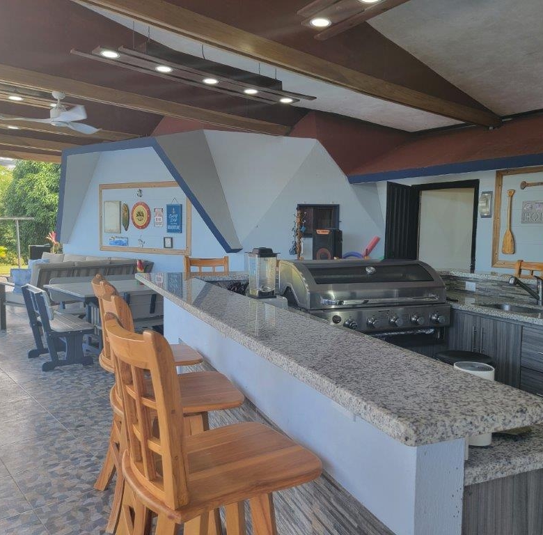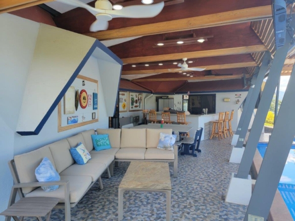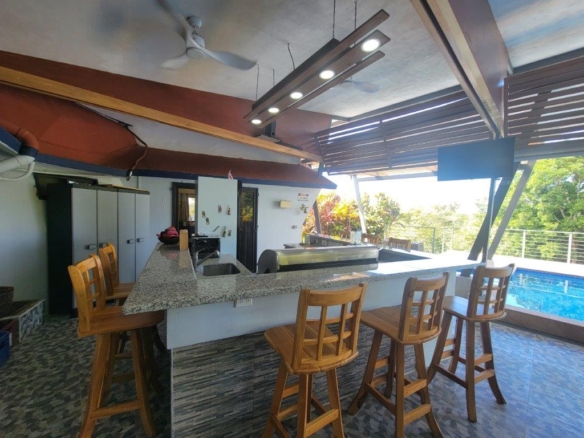Entertainment Oasis: The crown jewel of this coastal retreat is the sprawling 1,050 square foot entertainment pavilion with large pool and pool deck: an exquisite space with jaw dropping views of the coastline and national forest. This area was custom designed for fun gatherings and pure enjoyment. This entertainment center isn’t just an addition; it’s a sanctuary within a sanctuary—a space meticulously designed to elevate the art of relaxation and socializing against the backdrop of breathtaking natural beauty. It seamlessly merges indoor and outdoor living, offering a retreat where moments turn into memories and every gathering becomes a celebration of life amidst Costa Rica’s stunning landscapes. Step into this sprawling party pavilion and discover: