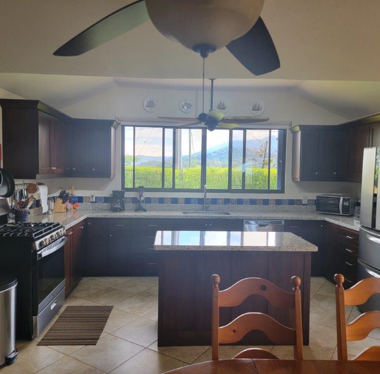 Indulge in the ultimate nature lover’s paradise in this stunning 3 bedroom, 3 bath Costa Rica retreat, with breathtaking views all around: rainforest covered mountains to the front and a winding river valley with spectacular river and ocean views out back! Nestled atop a bluff, this spacious 3,845 square foot home abuts a protected national forest, ensuring peaceful solitude as you breathe in the beauty of nature while also enjoying every contemporary convenience. Each room and terrace in this beautiful home offer a stunning panorama of majestic mountains, river valley and/or ocean views!