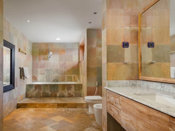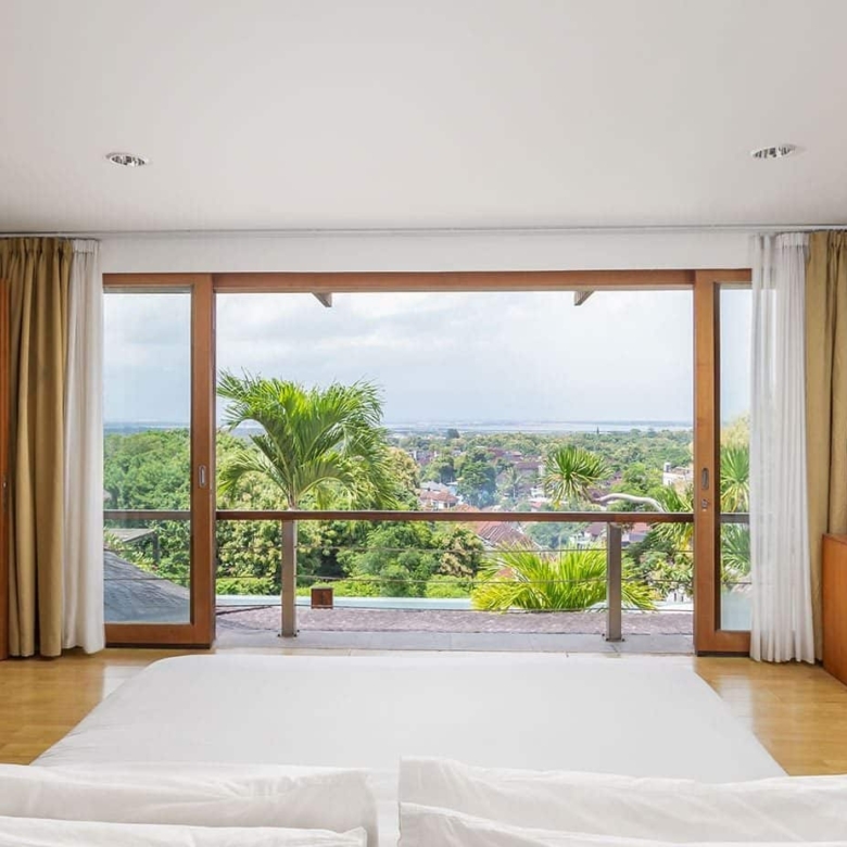 Tucked away in an exclusive hillside location overlooking Benoa Harbour with views stretching all across the north of the island, and catering for groups of up to 20 guests, this private villa resort is a great business opportunity for anyone looking to enter the high-end boutique accommodation market. The multi-level villa consists of one main house and two, self-contained, private two-bedroom villas and has been built to the highest of standards with four lounge areas, three dining areas and three kitchens. There are a total of 10 uniquely designed, en-suite bedrooms; a gym, sauna, and spa; a modern kitchen; off-street parking, and a 25 x 4m private infinity pool with three outdoor relaxation gazebos set in lush tropical gardens. It is perfectly located just 20 minutes drive from Bali airport, a selection of international golf courses, white sand beaches, world renown surf breaks, as well as a whole host of great restaurants, shops, and five-star resorts.