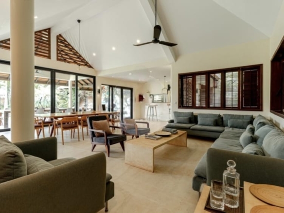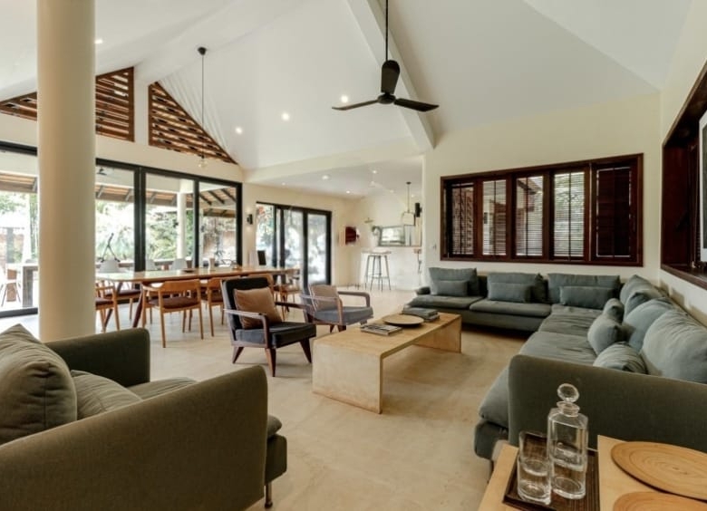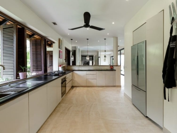 Set on a spacious 1,400 sqm property, the estate includes a main villa (350 sqm floor area) with five (5) bedrooms, a private infinity swimming pool, lush tropical gardens, and even a charming wooden guest house, creating a well-rounded sanctuary for family living or tranquil getaways.