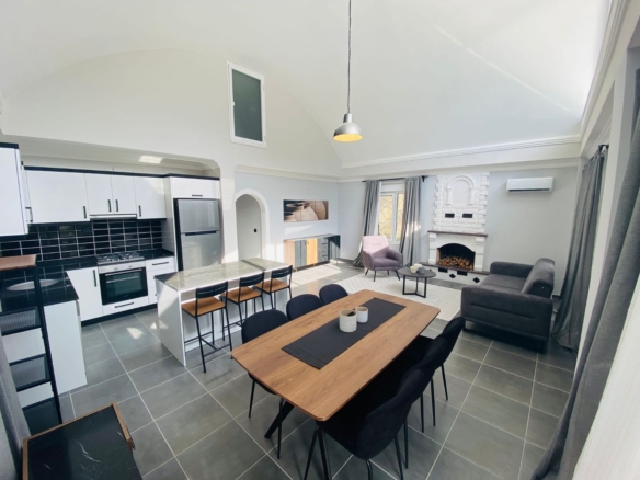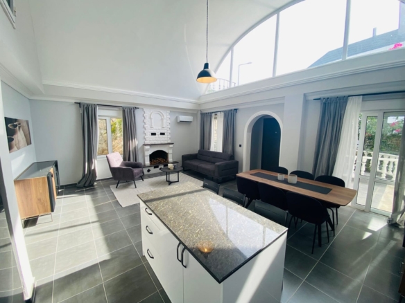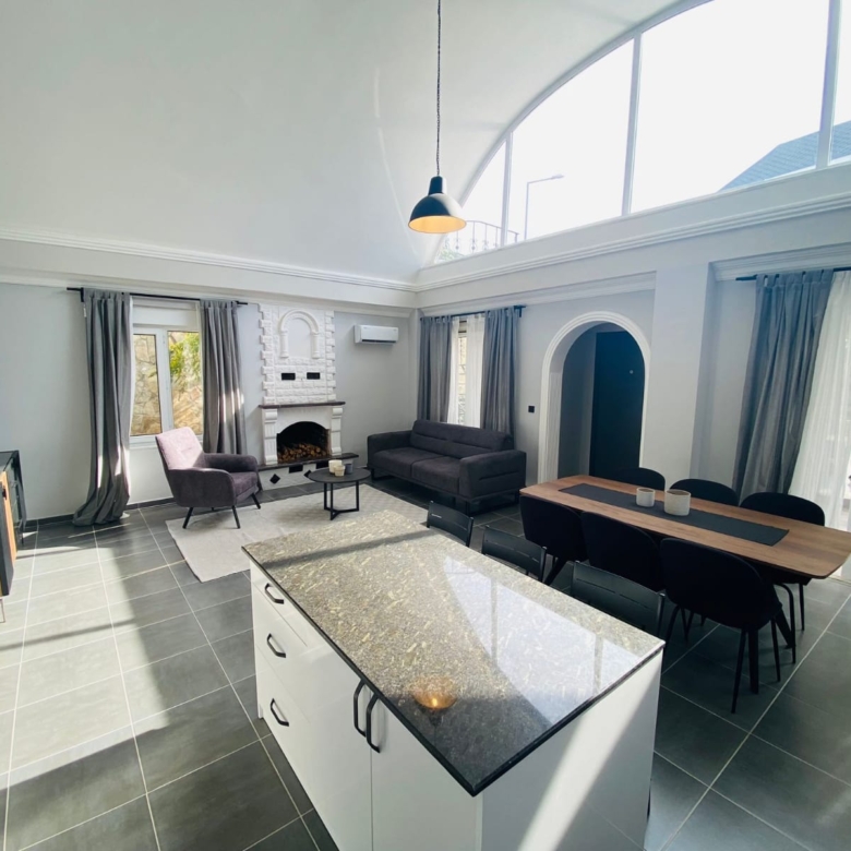 Luxury villa in Kargicak for sale – This luxury villa in Kargicak for sale features a spacious 3+1 layout, offering 175 m² of living space and a generous 400 m² plot. Designed with modern finishes, the villa boasts a southern-facing position that provides abundant natural light and sweeping views. The property comes fully furnished and includes a cozy fireplace, a large terrace, and additional storage in the cellar.