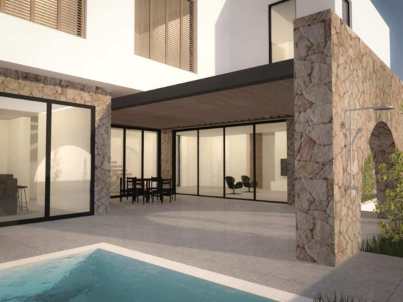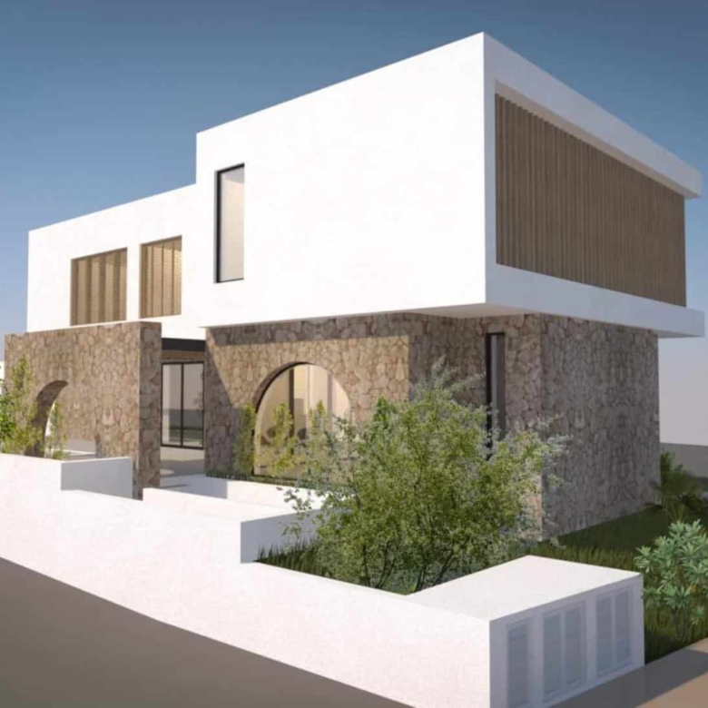 This substantial four bedroom detached house is situated moments from City Centre of Larnaka, within a 4 minutes distance driving from the beach. A modern architecture design combining traditional features. A clear separation of social and private zones! The ground floor is planned with spacious and lightful rooms where it consists of a living room, kitchen, bedroom, covered veranda and a double covered garage. On the first floor you can find 4 ensuite bedrooms, in the main bedroom you can find a spacious wardrobe and also a laundry room with a covered veranda.