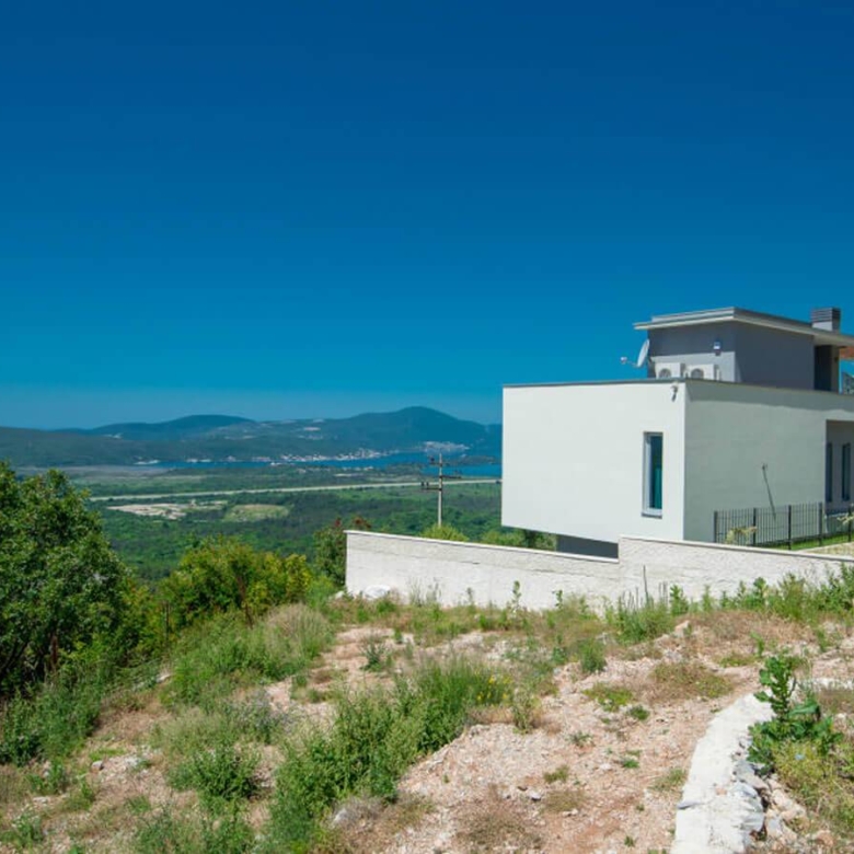 Nestled amidst lush greenery, this modern villa in Kavač, Kotor municipality, offers stunning panoramic views of Tivat Bay. A true gem of luxury living, the villa combines elegance with a serene, nature-filled setting, just 6 km from both Tivat and Kotor. With convenient proximity to Tivat International Airport and Porto Montenegro Yacht Marina, it’s the ideal choice for those seeking tranquility and accessibility.The ground floor features a practical garage on one side, while two spacious bedrooms, a bathroom, and a separate toilet occupy the other side. The first floor includes a large master bedroom with a private bathroom and separate toilet, alongside an open-plan living room connected to a modern kitchen. The living room opens onto a charming terrace, perfect for soaking in the stunning sea views. On the second floor, a spacious roof terrace offers an impressive panoramic view of the sea, ideal for relaxation.The villa is sold fully furnished and is located right next to the road, providing easy access. Its exceptional view and elegant design offer an ideal combination of luxury and tranquility.If you’re captivated by this stunning villa and wish to explore it further, don’t hesitate to call us or arrange a visit today!