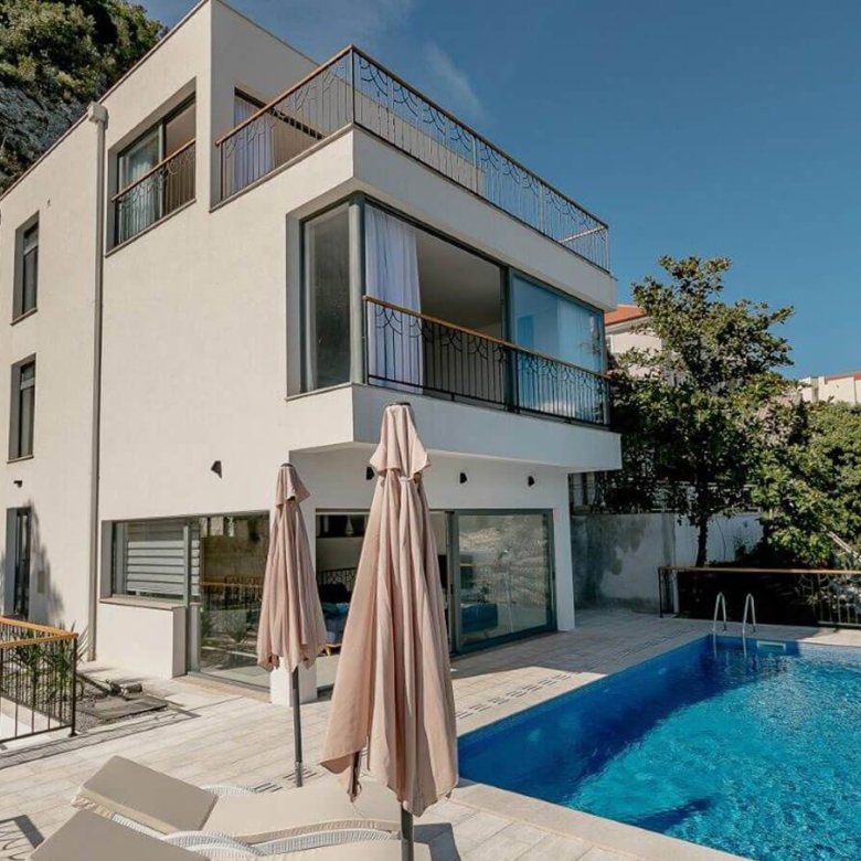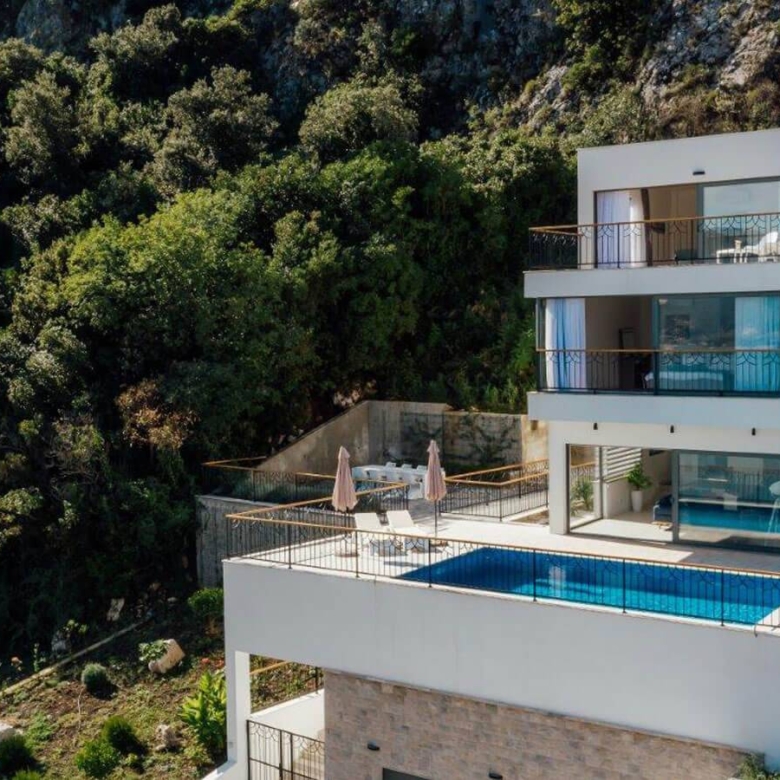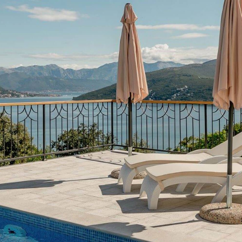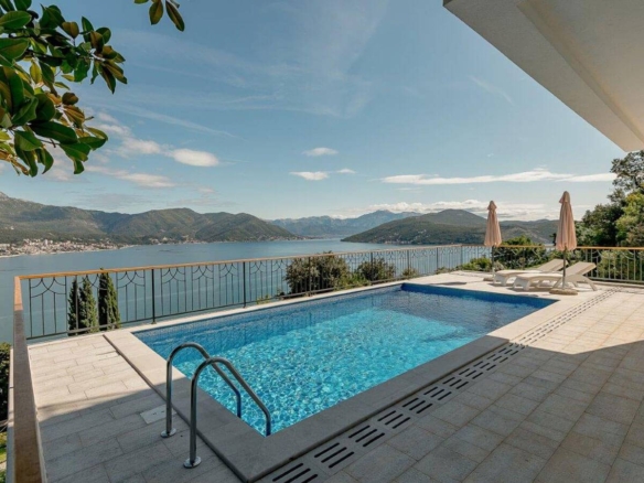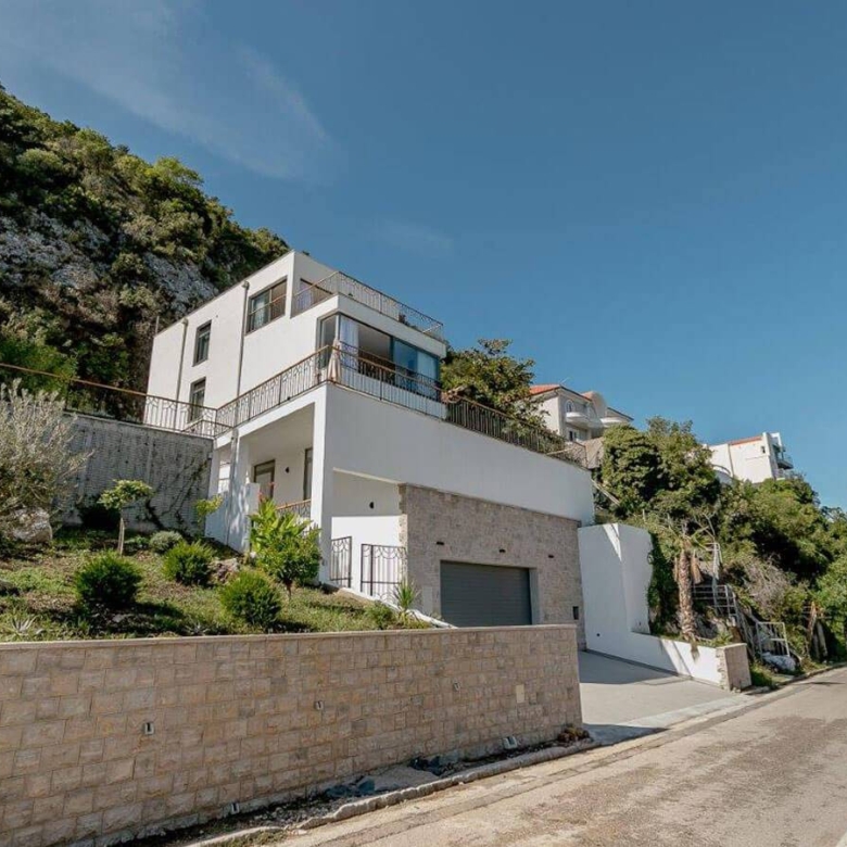 Discover coastal elegance in this exquisite luxury villa, ideally situated in Njivice at the entrance to Herceg Novi Bay. Renowned for its serene ambiance, Njivice offers a peaceful retreat where you can savor the majestic beauty of the Bay of Kotor. Enjoy stunning panoramic views of the Herceg Novi and Lustica peninsulas as this modern villa basks in the gentle morning sun and offers the perfect blend of tranquility and convenience.Blending contemporary elegance with ultimate comfort, the villa features four spacious bedrooms—each showcasing breathtaking sea views—and four beautifully designed bathrooms that ensure privacy and luxury for both residents and guests. The thoughtful design makes this property an ideal family home or a sophisticated second residence.At the Ground Level, an inviting entrance hall leads into a generous open-plan living room with a dining area and modern kitchen. A guest bathroom and a terrace with a private swimming pool create an ideal outdoor dining and summer gathering setting. On the First Floor are two master bedrooms, each with an en-suite bathroom and walk-in closet, ensuring privacy and comfort. On the Second Floor, two additional well-appointed bedrooms share a stylish bathroom and open onto a terrace with a breathtaking sea view. In the Basement, a technical room and garage provide practical support and secure parking.This villa is constructed from the highest-quality materials with meticulous attention to detail, designed for ultimate comfort and luxury.Set on a landscaped yard, the property is a true oasis. Poolside terraces provide enchanting views of the sea and the Bay of Kotor. Despite its peaceful, secluded setting, the villa is just a short drive from the beach and essential local amenities. This villa benefits from an exceptional location with easy access to international travel and luxury marinas. Tivat and Dubrovnik International Airport are within a 30 km radius. Additionally, the upscale marinas of Portonovi and Porto Montenegro are easily accessible, ensuring that luxury waterfront experiences are always at your fingertips.This move-in-ready villa is your gateway to the ultimate Montenegrin coastal lifestyle. For more information or to schedule a viewing, don’t hesitate to get in touch with us. Your dream home awaits in this exquisite coastal retreat.