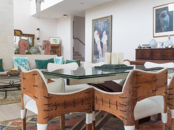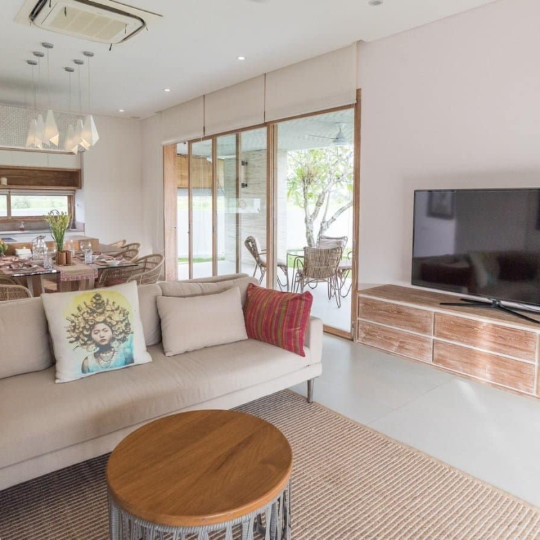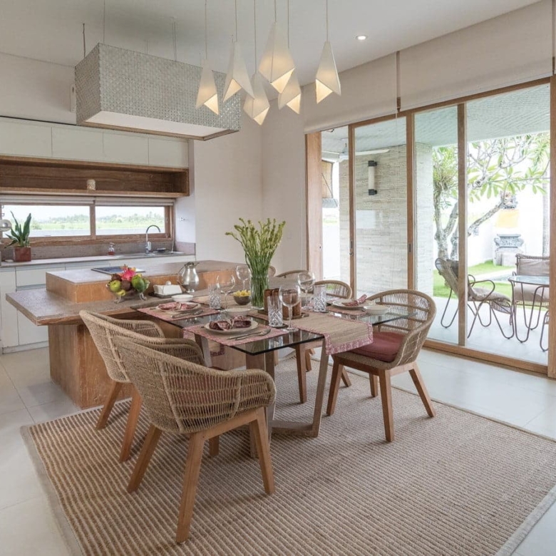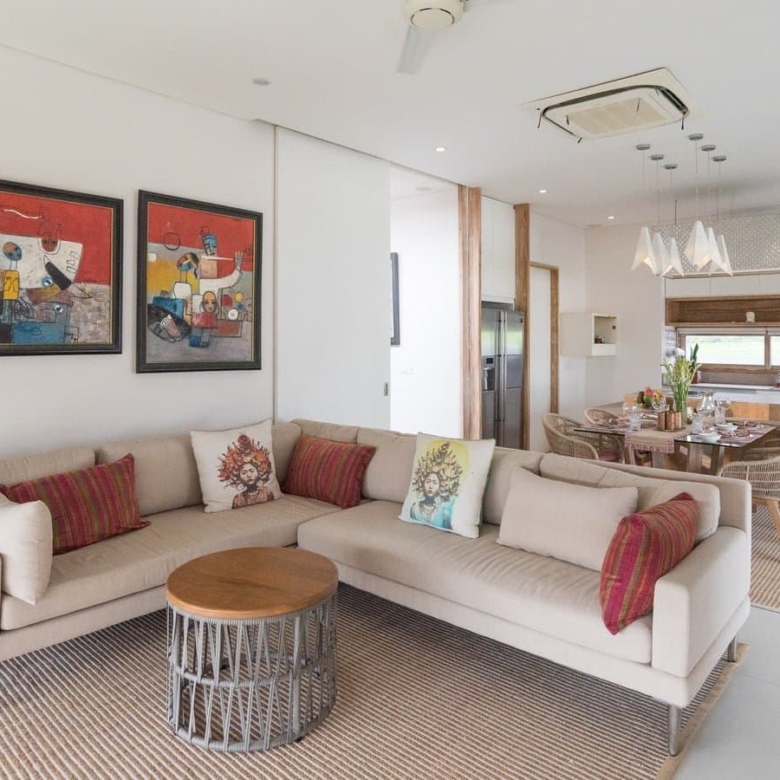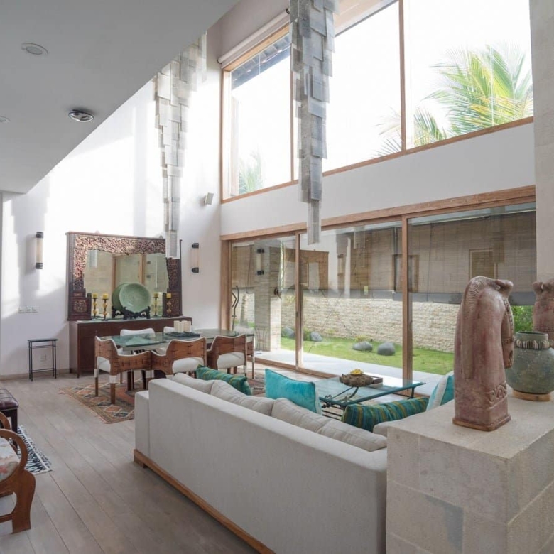 This artfully designed 4 bedroom villa is located some 1 km from Cemagi beach. It offers gorgeous views from its upper-floor master suites and is decorated with beautifully curated art and impeccable modern furnishings.