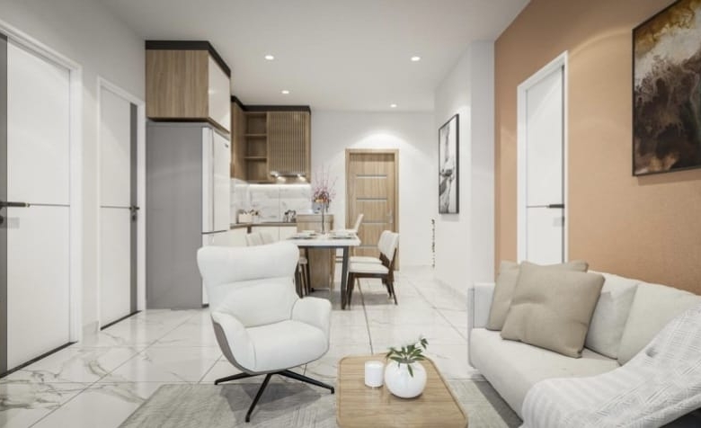 The open-plan living and dining area flows seamlessly, complemented by three private bedrooms—each designed for comfort, rest, and relaxation. Premium finishes and elegant details elevate everyday living, while the spacious layout welcomes natural light and refreshing sea breezes.