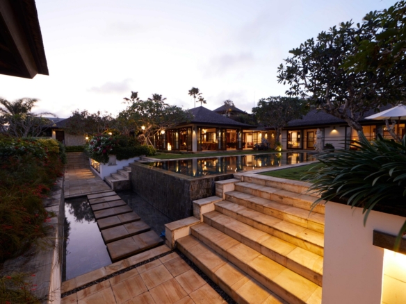 Spreading across 1722 sqm of land, the beautifully designed, contemporary property has a total property size of 640 sqm set around the long, inviting pool and gorgeous, lush gardens and calming water features. The carefully chosen décor is stylish and warm, showcasing beautiful stone wall carvings, marrying luxurious elegance with modern comforts.