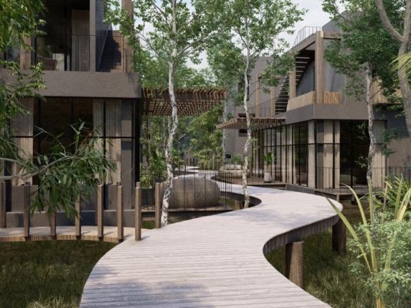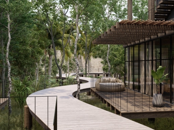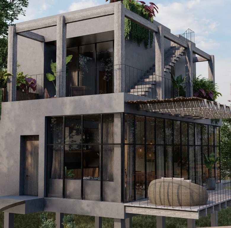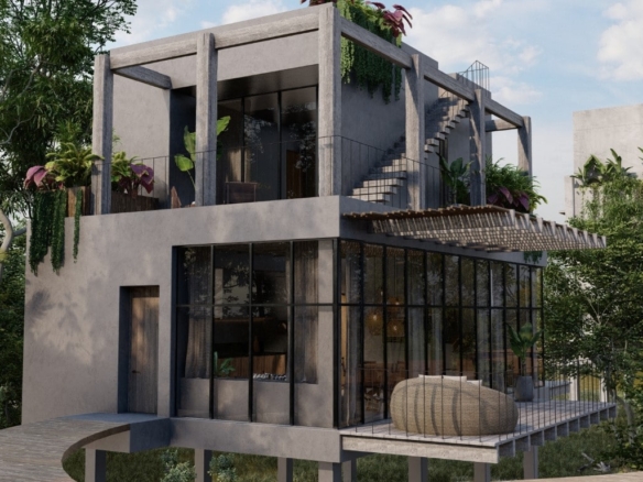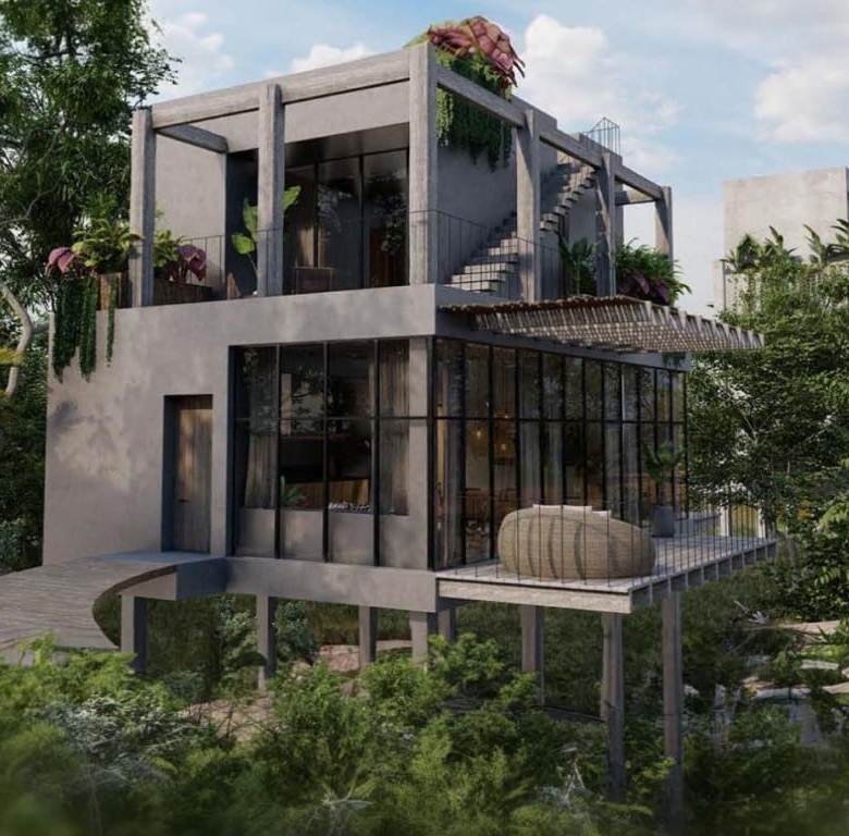 This villa is crafted with expansive spaces and sophisticated finishes. The standout Mangle unit spans 3,191 sq. ft. and features three bedrooms and three bathrooms adorned with elegant chukum finishes. Each villa includes a private rooftop pool and expansive terraces that showcase breathtaking views, creating the perfect environment for relaxation or entertaining. Proximity to Tulum’s pristine beaches and lush mangroves further enhances the property’s charm.