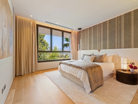 High-quality carpentry and sweeping panoramic views from the main floor terraces and solarium further elevate the living experience. Upstairs, a private swimming pool provides a secluded oasis, with the added option to install a bar or barbecue area for the ultimate in leisure and entertainment.