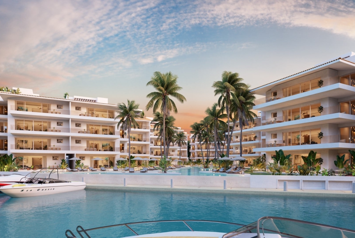 This elegant 2-bedroom, 2.5-bathroom condo at Marina Aqua offers a perfect blend of modern luxury and waterfront tranquility in Puerto Aventuras. Situated in a prestigious gated community, this residence provides breathtaking marina views, thoughtfully designed interiors, and access to a range of high-end amenities.