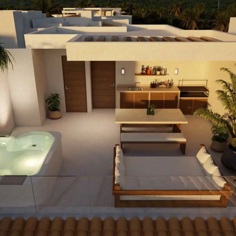 Experience waterfront luxury with this stunning 2-bedroom, 2.5-bathroom penthouse at Marina Aqua, an exclusive residence in Puerto Aventuras. Designed for those who value privacy, sophistication, and high-end living, this penthouse features a private rooftop with a Jacuzzi, breathtaking marina views, and access to world-class amenities.