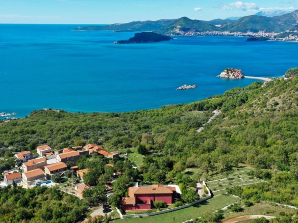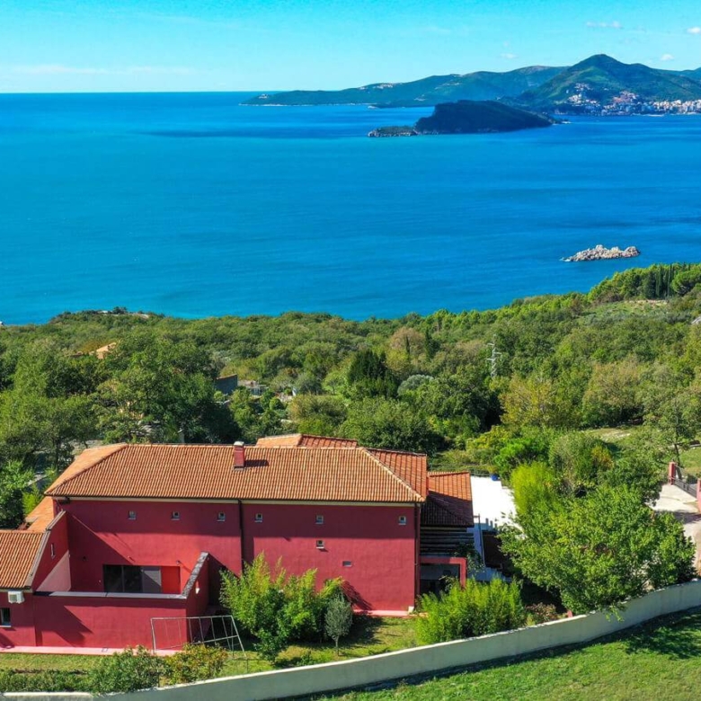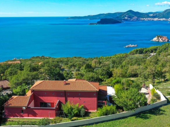 Thisvilla for saleis located in village Blizikuće,in Budva municipality. Blizikuće is one of the most beautiful places along Budva riviera and is located in hills above the famous St.Stefan, famous islet-hotel.The size of the villa is 393m², with a plot of 3.225m².The stylish villa spreads over two levels. On the ground floor, there are two bedrooms, a small and a large one (which has its bathroom), a living room, a kitchen, a dining room, toilet and a two storage rooms.On the first floor, there are three bedrooms, each with a bathroom.The villa has imposing terraces, both with magnificent sea views.Within the villa, there are two beautiful gardens in greenery and a swimming pool, size 18x7m.There is also a garage for three cars.In a peaceful and quiet area, this villa is perfect for family life or holiday retreat, ideally positioned to enjoy the beauty of this part of the Mediterranean sea.In terms of connectivity, it takes about 12km to the Old Town and port of Budva, 33km to the airport Tivat, and 35km to the Porto Montenegro marina for superyachts.It is well-positioned, just above the main road that connects Budva and Bar.If you recognize this extraordinary property as an excellent choice for you, contact us for more information.