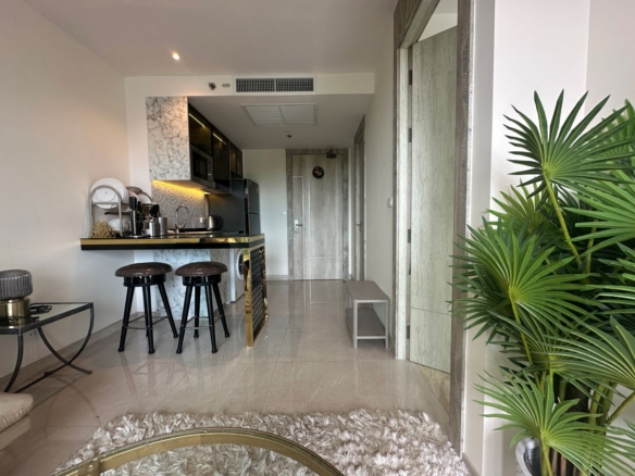 This fully furnished 1-bedroom condo is located at Riviera Monaco, a modern high-rise condominium in Na Jomtien, Pattaya. Situated on the 3rd and 4th floors, the unit offers 39 square meters of comfortable living space and a clear view of the pool. It is registered under foreign quota, making it eligible for full foreign ownership.