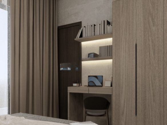 Built on 81.67 sqm of land, this villa spans 205.55 sqm across two levels. The design features bright living spaces with a pool-facing layout, a fully equipped kitchen, indoor dining, and a cozy lounge area. Each of the two bedrooms comes with its own bathroom, complete with rain showers and modern finishes. The east-facing swimming pool (3.6 x 6.735 meters) adds a relaxing outdoor focal point, while the villa also includes a carport and private road access via paved block.