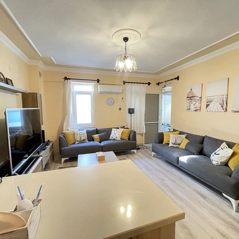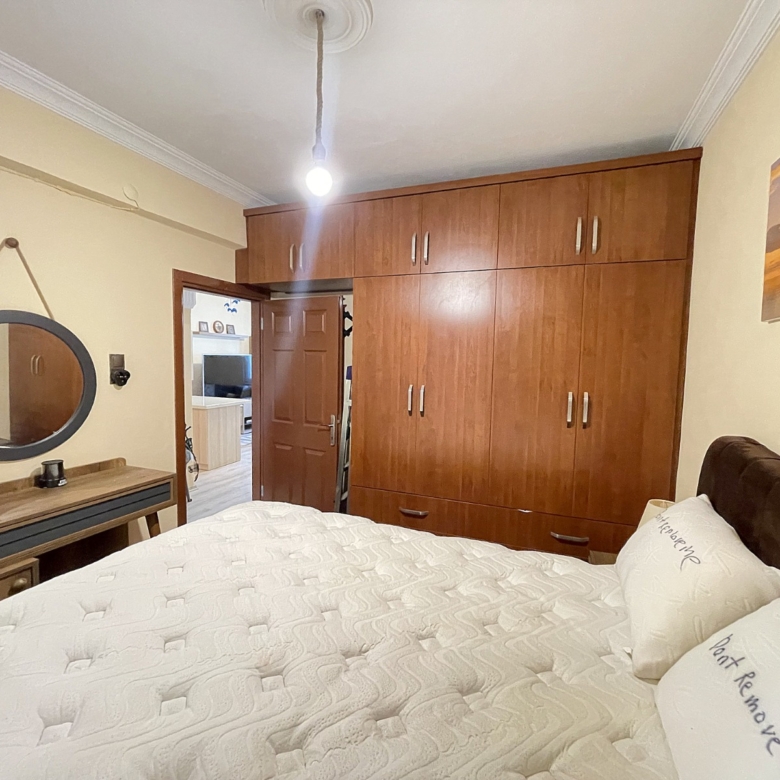 Renovated Apartment in Mahmutlar – This renovated apartment in Mahmutlar offers a comfortable and modern living space with 60 m², featuring 2 bedrooms and 1 living room. The property has been fully renovated and is in excellent condition, requiring no additional expenses. It is sold furnished with white goods and stylish furniture, making it a ready-to-move-in home.