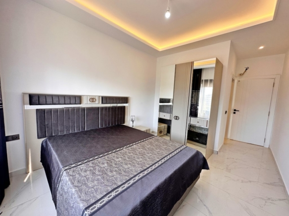 This modern 2+1 furnished apartment in Kargicak’s Lord’s Palace offers an exceptional living experience. Located on the second floor, this 85-square-meter residence comes fully furnished, combining style and comfort in every detail. Residents will enjoy a range of top-notch amenities, including indoor and outdoor pools, a children’s pool, a fitness center, and a relaxing hamam and sauna. The complex also features a jacuzzi, cinema, and both open and closed play areas. Additionally, with a caretaker, a garden, a generator, and open parking, convenience is at your doorstep. Just 500 meters from the beach, this modern 2+1 furnished apartment is the perfect choice for those seeking a luxurious and connected lifestyle.
