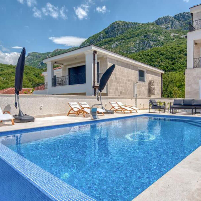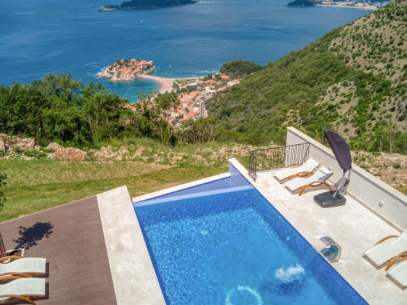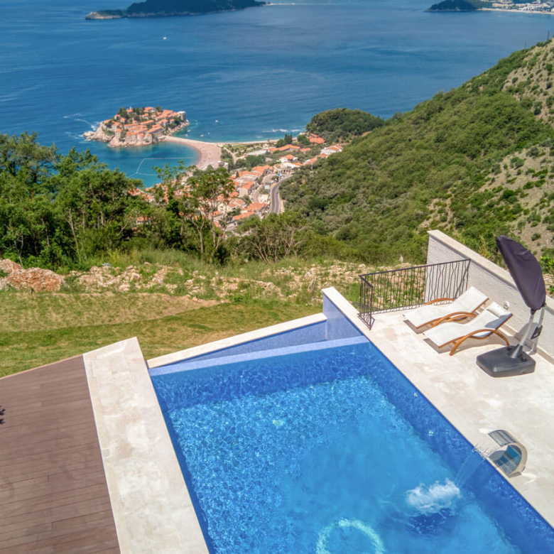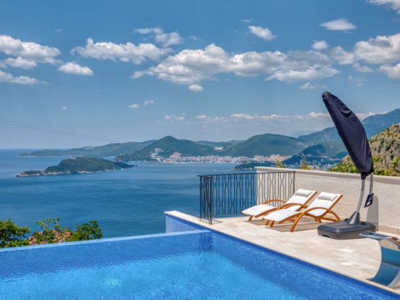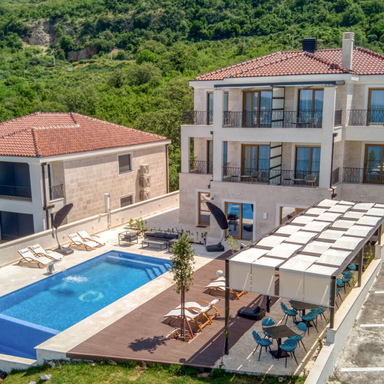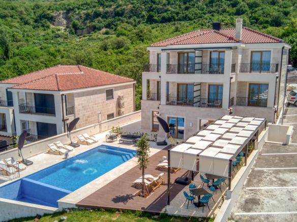 Perched on the peaceful hills of Blizikuće, just above the world-famous Sveti Stefan, this spectacular villa offers unmatched panoramic views of the Adriatic Sea, elegant living spaces, and a level of privacy and tranquility rarely found on the coast. Designed for refined lifestyles and unforgettable gatherings, the property also represents an exceptional investment opportunity in Montenegro’s thriving luxury market.The villa was conceived and built as a hotel unit, featuring four fully equipped apartments and one studio apartment intended for staff, located on the ground floor. On the ground floor, a restaurant with a kitchen is located, capable of satisfying the needs of the entire complex. The future owner of this facility can also create an à la carte restaurant for both the complex’s guests and other visitors.Key Features:Four fully furnished apartments, each with bedrooms, private bathrooms, and terracesA ground-floor restaurant with a kitchenUnderfloor heating throughoutInfinity pool with pergola and sun deckStudio apartment for staff, with separate entranceHigh-end finishes:Italian Florim ceramics,Villeroy & Boch sanitary ware,Dornbracht & Hansgrohe faucets,Premium wooden parquet,Custom interior doors and Maljat natural stone façadeAluminum windows and stone-paved exteriorThis 345 m² villa sits in a gated residential complex with dedicated parking and infrastructure built to the highest European standards. In terms of location and connectivity, it is just 13 km from Budva Old Town, 33.7 km from Tivat International Airport, and 56.2 km from Podgorica International Airport.Whether you are looking for a dream family retreat or a premium income-generating property, this villa offers the best of both worlds—privacy, elegance, and investment potential on the coveted Montenegrin coast.Contact us today for more information or to schedule your private viewing.