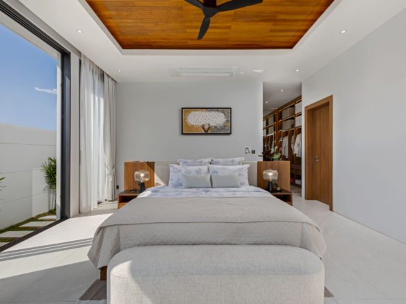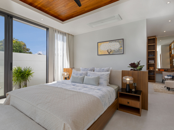Discover this beautifully designed 4-bedroom, 4-bathroom modern pool villa located in the peaceful residential area of Cherng Talay, just minutes away from Layan Beach and the Laguna Phuket Complex. Priced at THB 27.8 million, this single-storey L-shaped villa is part of an exclusive 16-unit development offering comfort, privacy, and convenience in one of Phuket’s most desirable neighborhoods. With a built-up area of 361 sqm and sitting on a 491 sqm plot, the villa features a private 10 x 4 meter swimming pool, lush garden spaces, and seamless indoor-outdoor flow. The high-ceiling open-plan living and dining areaconnects directly to the pool terrace, creating the perfect atmosphere for both relaxation and entertainment. Each bedroom is thoughtfully designed with ensuite bathrooms, and the master bathroom includes a separate bathtub and shower. A fully equipped European kitchen with a central island and breakfast bar adds to the villa’s modern functionality, while practical features such as a guest toilet, laundry area, storage room, and covered parking for two cars ensure comfort for everyday living. Property Highlights: Price: THB 27,800,000 Bedrooms: 4 Bathrooms: 4 + Guest Toilet Built-up Area: 361 sqm Land Size: 491 sqm (122.7 sq. wah) Swimming Pool: Private (10 x 4 m) Ownership: Thai Freehold / Thai Company or Long-Term Leasehold Floors: 1 Units in Development: 16 Furniture: Built-in Furniture Parking: 2 cars Villa Features: Modern tropical L-shaped layout Private pool with wide terrace Master bathroom with bathtub and separate shower High-ceiling open-plan living and dining area Fully equipped European kitchen with island Outdoor shower and garden space Guest powder room Laundry and storage areas Covered parking Community Facilities: 24-hour security CCTV Automatic gate access Location: The villa is ideally located in the northern part of Cherng Talay, close to Layan, and just minutes from local amenities such as supermarkets, restaurants, Laguna Resort Complex, golf courses, Boat Avenue, and Porto de Phuket. Beautiful Layan and Bang Tao Beaches are just 15 minutes away, and Phuket International Airport is only a 25-minute drive.