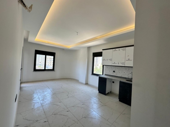 Apartment in Mahmutlar for sale – This brand new apartment for sale in Mahmutlar Corner Side is located in a newly built building with occupancy permit. It is just 100 meters from Akdeniz Mall and 500 meters from the beach. The apartment is close to Mahmutlar Center, with Alanya city center 13 km away and Gazipaşa Airport 40 km away. Situated on the 4th floor of a 5-story building, it is part of a single block. The building offers excellent amenities including a swimming pool, Turkish bath, sauna, and fitness center.