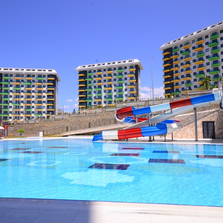 The complex provides luxury social amenities such as outdoor and indoor pools, a Turkish bath, sauna, fitness center, cinema, barbecue area, children’s playgrounds, aqua park, and sports courts for basketball, tennis, and football. Residents also benefit from 24/7 security with camera surveillance, elevators, indoor/outdoor parking, and green garden areas with gazebos. ThisModern flat in Avsallar for saleoffers everything needed for a peaceful lifestyle close to the sea and nature.