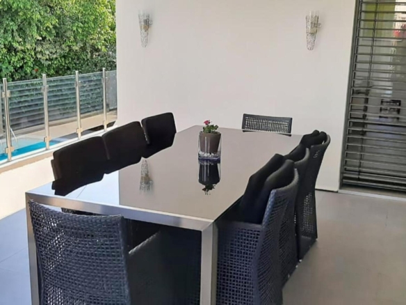 This modern 4 bedroom home in Agia Fyla is perfect for families, featuring sleek design, open living spaces, and a private swimming pool. The basement offers a fully equipped self-contained apartment—ideal for guests or domestic help. Enjoy spacious bedrooms with balconies, a high-end kitchen, underfloor heating, full A/C, and smart home features. Located in a peaceful cul-de-sac, opposite a green area, with top schools and motorway access just minutes away. A perfect blend of style, comfort, and convenience!