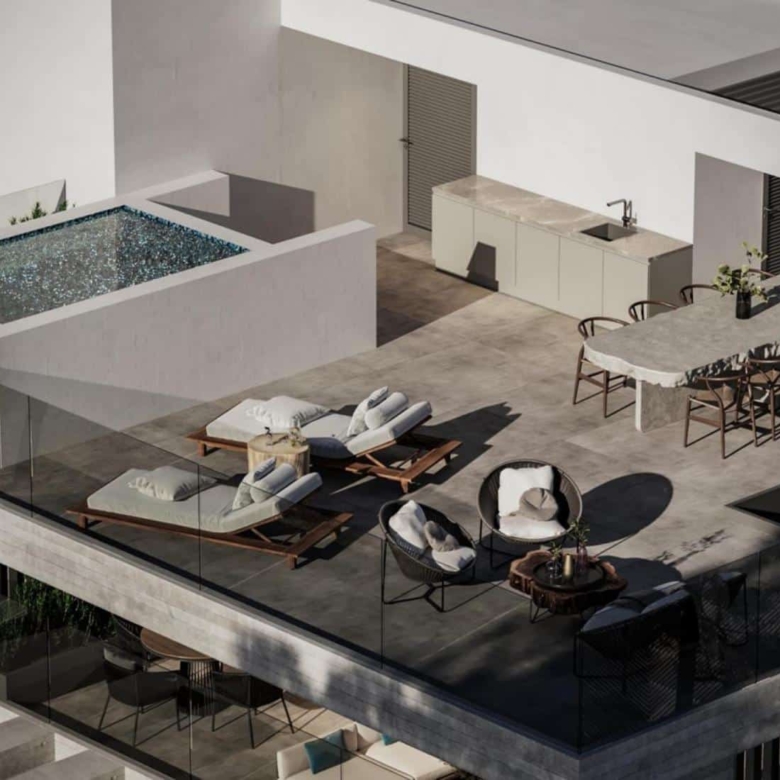 Explore a selection of 18 contemporary apartments, offering one, two, and three bedrooms within a secure gated community, tailored for urban living in central Larnaca. Proximity to schools and essential amenities. This sixth-floor three-bedroom apartment boasts breathtaking vistas and a private pool, complete with a 5KW photovoltaic system.