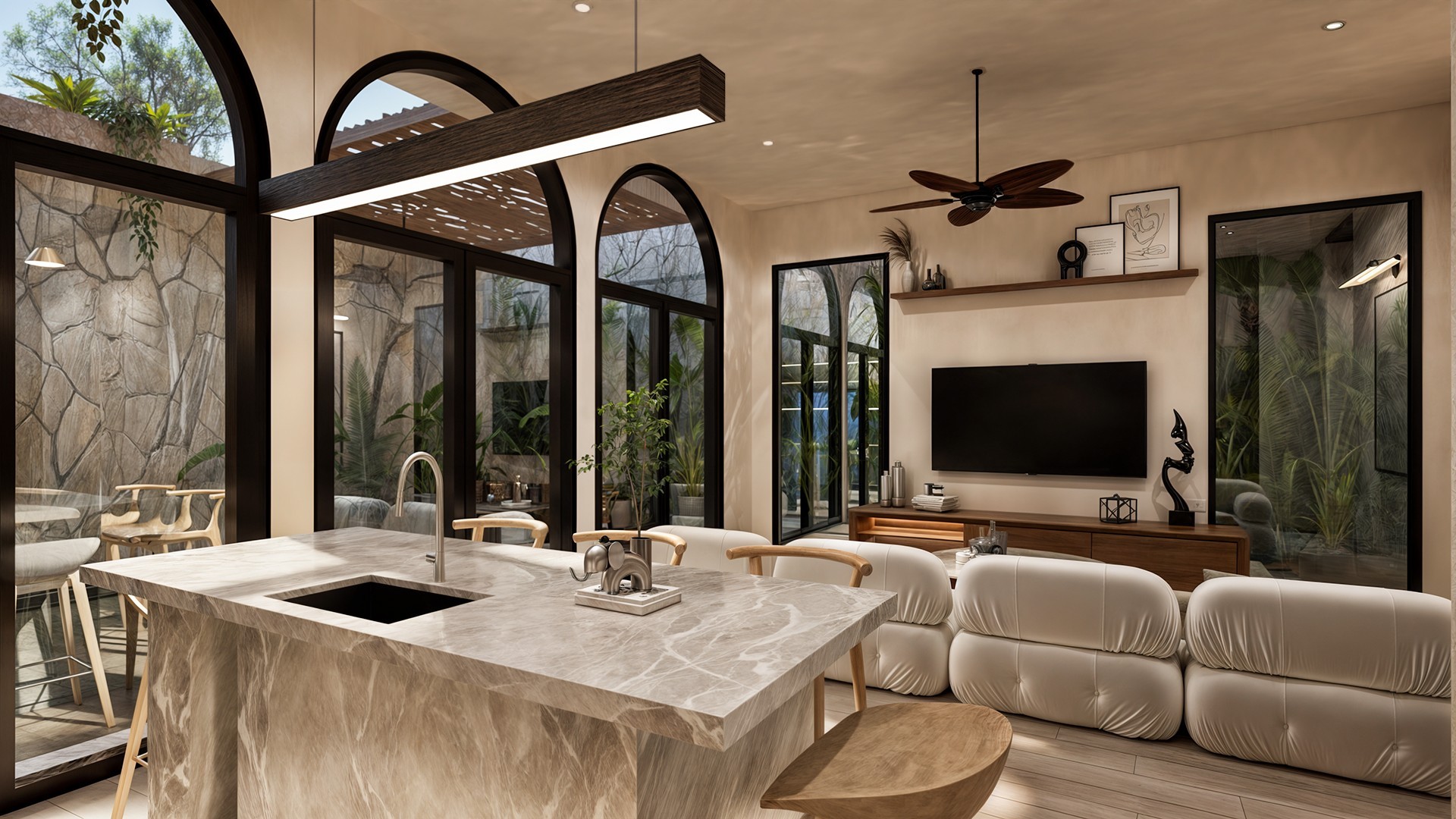 Type C: 295 m2, 3 bedrooms (2 master suites), 4 baths, private pool and patio, rooftop pool with second kitchen, ocean views, – IDR 9.650.000.000