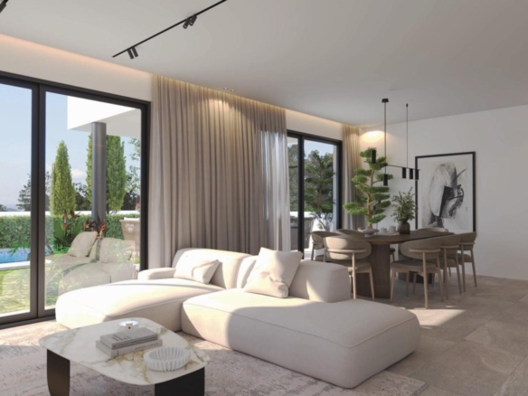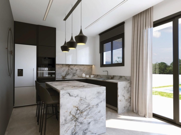 This contemporary 3 bedroom house in Nicosia, offers a blend of modern design and luxury living. Located in a desirable area, it provides easy access to city amenities. Featuring spacious open plan interiors with expansive windows, a gourmet kitchen with high quality finishes, and a master suite with an en suite bathroom, this home is designed for comfort and elegance. Additional amenities include two generously sized bedrooms, a private garden area of 126㎡ ideal for relaxation and entertaining, and covered parking for added convenience. This residence presents a unique opportunity to own a modern home in a desirable location.