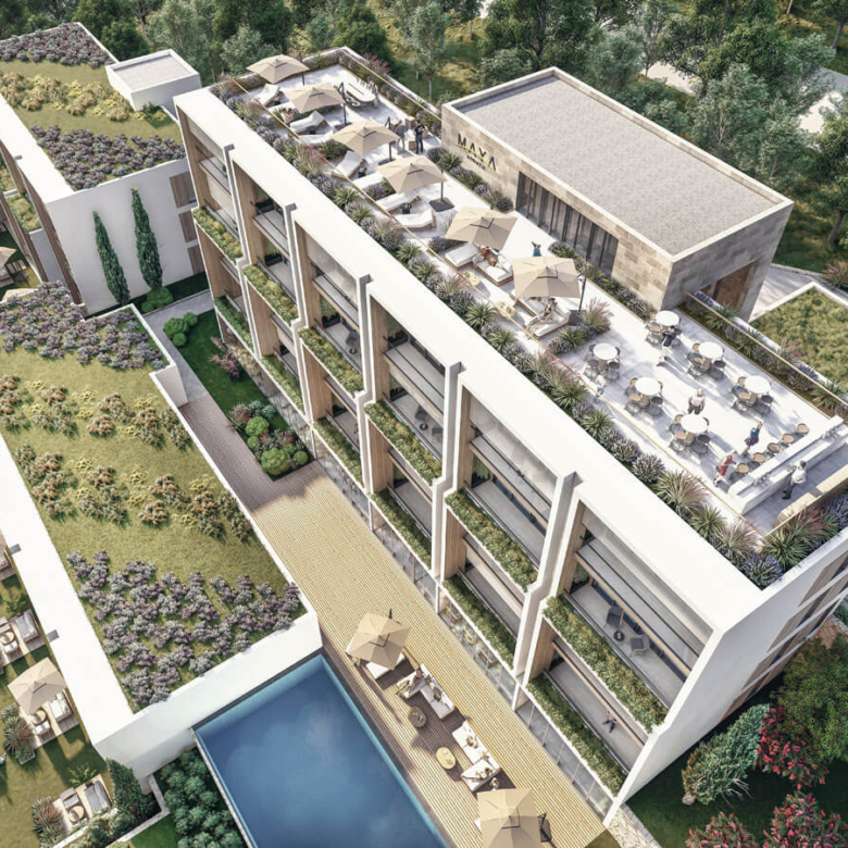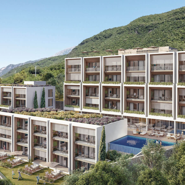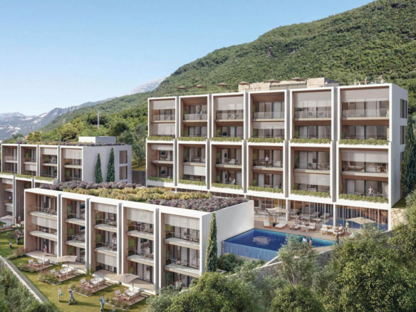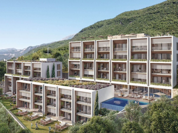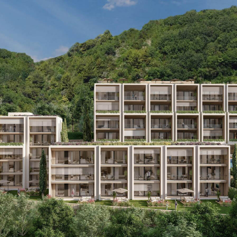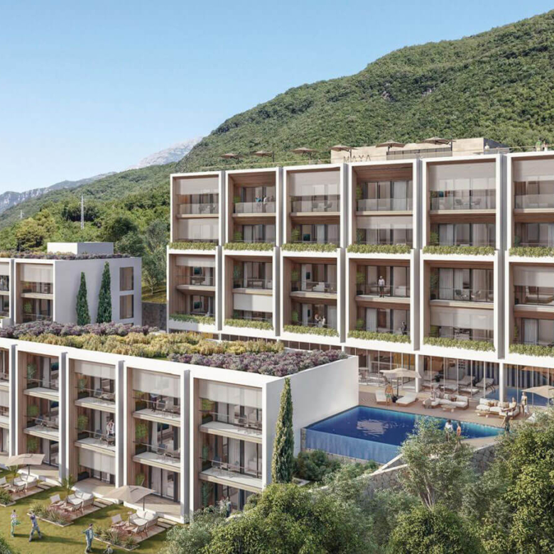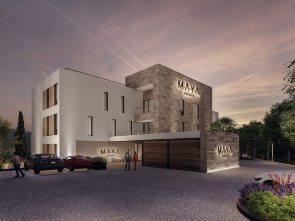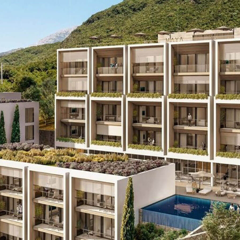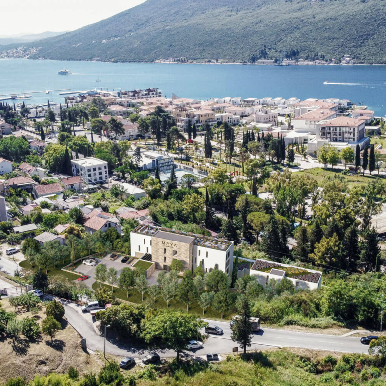 These modern one-bedroom apartments are located in the Maya Adriatic residential complex in Kumbor at the entrance of the Bay of Boka. The complex is in the embrace of the sun and sea, away from the city noise and bustle, close to the famous Portonovi residential area and luxury yacht marina. This complex impresses with its peaceful atmosphere, stunning natural beauty, and crystal-clear water. Unspoiled beaches and panoramic views of the Bay of Kotor create ideal conditions for vacation and accommodation.The development offers two different types of 56 residential units in three buildings. Its original architecture is designed to meet the highest standards of luxury and comfort, with meticulously designed interiors, lush gardens, and spacious balconies and terraces overlooking the sea, providing maximum comfort and value for your stay.Avaliable one-bedroom apartments:APARTMENT C-2, ground floor, 40.71m²+ terrace, 7.85m²+ garden area 19.72m²APARTMENT C-3, ground floor, 40.71m²+ terrace, 7.85m²+ garden area 19.72m²APARTMENT C-4, ground floor, 40.71m²+ terrace, 7.85m²+ garden area 19.72m²APARTMENT C-5, ground floor, 50.81m²+ terrace, 7.98m²+ garden area 19.72m²APARTMENT C-8, first floor, 40.71m²+ terrace 7.85m²APARTMENT C-9, first floor, 40.71m²+ terrace 7.85m²APARTMENT C-9, first floor, 40.71m²+ terrace 7.85m²APARTMENT A-2, first floor, 42.2m²+ terrace 8.55m²APARTMENT A-3, first floor, 42.2m²+ terrace 8.55m²APARTMENT A-4, first floor, 42.2m²+ terrace 8.55m²APARTMENT A-5, first floor, 42.2m²+ terrace 8.55m²APARTMENT A-9, second floor, 42.2m²+ terrace 8.55m²APARTMENT A-10, second floor, 42.2m²+ terrace 8.55m²APARTMENT A-11, second floor, 42.2m²+ terrace 8.55m²APARTMENT A-14, third floor, 42.2m²+ terrace 8.55m²APARTMENT A-16, third floor, 42.2m²+ terrace 8.55m²APARTMENT A-17, third floor, 42.2m²+ terrace 8.55m²APARTMENT A-22, fourth floor, 42.2m²+ terrace 8.55m²APARTMENT A-23, fourth floor, 42.2m²+ terrace 8.55m²APARTMENT BH A-2, ground floor, 90m²+ garden area 19.72m²APARTMENT BH B-15, third floor, 90m²There is a shared outside infinity swimming pool with a sunbathing area, an inside swimming pool for all-year use, a SPA&Welnes area, a gym, and a rooftop bar ideal for parties and gatherings with family and friends. There are underground garages with car elevators and electric car chargers. In A Maya Adriatic complex, you will always be able to feel the magic of the Mediterranean away from the city’s noise and bustle. The complex is close to the sea, city center, and historical and tourist places thanks to its central location. This makes the beauty of living in Montenegro a real privilege.A Maya Adriatic complex presents a compelling investment opportunity. Montenegro’s booming tourism industry and increasing demand for luxury properties make your apartment a sound investment with high rental yields and capital appreciation potential. Contact us today for more information or to arrange a viewing. Experience the perfect blend of comfort, style, and cultural richness in this Kumbor development.