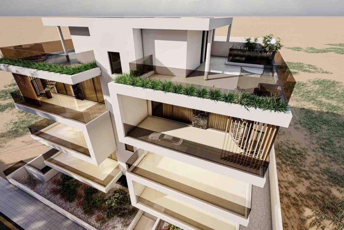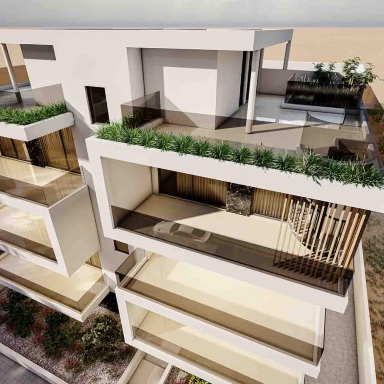 A modern residential cul-de-sac development, 1200m from the sea, with easy access to Larnaca center, and the highway for other cities. Only two apartments on each of the three floors, with open plan kitchen, 2 Master bedrooms with en-suite. Third-floor units enjoying private and individual access to a large roof garden on the 4th floor with its BBQ area as well as an extra wc-shower and room that can be converted into 3rd bedroom. Furthermore, these top floor units will have net metering and a photovoltaic system.