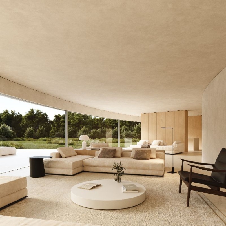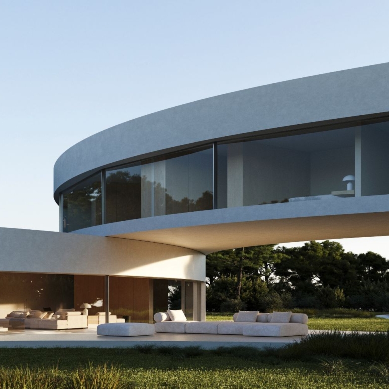 Optimal natural light and views are maximized by the villa’s curving shape and endless windows. It is divided into three stories, the first of which has the day area, the service rooms, the main house entrance, and access to the guest rooms, which have their own kitchen and living room. A guest bathroom, a living room with a closed kitchen and dining space, and another dining area with an open kitchen are all aspects of the day area. There are five large bedrooms on the second floor, each with an en suite bathroom and stunning views of the nearby Valderrama golf course. There is a spa, sauna, heated pool, gym, cellar, and movie theater in the basement, which provides all you need to pass the time.