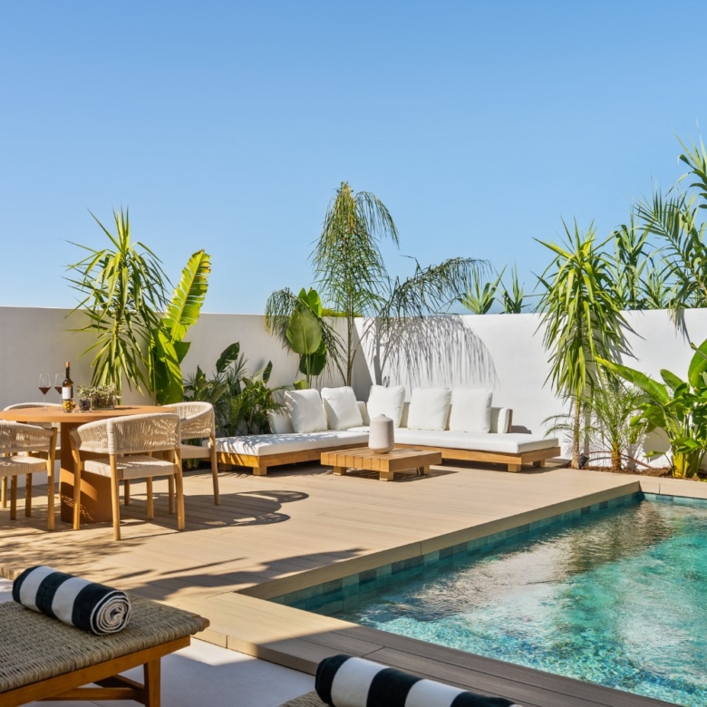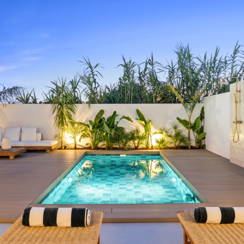 The home is arranged over two floors and features three bedrooms and three bathrooms, along with a private terrace complete with an outdoor bathtub and lounge area—perfect for relaxing or entertaining. Ideally located in Nueva Andalucía, the property is within walking distance of the beach and Puerto Banús, and close to public transport, top schools, renowned restaurants, and the popular Real Club Padel. This renowned sports center offers padel courts, indoor and outdoor gyms, a restaurant, and more, making it a true haven for sports and wellness enthusiasts.