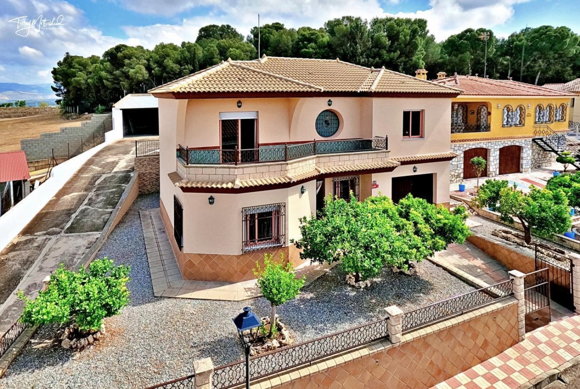 The villa occupies an elevated position, affording stunning panoramic views, in a quiet row of equally elegant houses just a two minute walk from the town centre. Moraleda is just a fifteen minute drive from Granada airport, a twenty minute drive from Granada city centre and a one hour drive from Malaga. It is surrounded by countryside which is fabulous for both walking and mountain biking. The property has two driveways. The first leads to the large integral garage which has power, light and water and is plumbed for an automatic washing machine and has an independent hot water supply. From the garage you can also access both the rear BBQ/garden area and the living accommodation. On the ground floor the front door opens into a very impressive entrance hall which is over five metres in height with a marble sweeping staircase to the first floor, and marble flooring which continues throughout the whole living accommodation. Off the entrance hall is the large lounge/dining room with three windows overlooking the front garden area which has orange, lemon and mandarin trees. Within the lounge is the control panel for music. This panel allows music to be piped into every room in the house with each room having it’s own independent control panel. Beyond the lounge there is a fully fitted kitchen with breakfast table. The kitchen has both wall and base units with granite worktops. The units house an integrated electric oven, microwave and dish washer. A double sink unit is located directly under the window which looks out into the countryside. There is also an ample larder with fitted cupboards and power for an additional chest freezer off the kitchen. There are also a fully tiled shower room and an under stairs store on the ground floor next to which is the door giving direct access to the garage and the rear BBQ area. On the first floor there is a large open landing with feature round etched glass window flooding light into the stair well illuminating the wonderful plaster mouldings and ceiling rose. Off the landing is the master bedroom which is large and has sliding glazed doors leading onto a south facing private terrace with stunning panoramic views. There are three further bedrooms, two large singles and another large double, off the landing along with a large fully tiled bathroom with large corner bath. At the rear of the property is a large stoned open area with swings for children. Beyond the play area is a large detached workshop which has power and light. It is of concrete block construction with a steel roof. It has a large sliding door for access and two widows bringing in natural light. The workshop is over fifteen metres long and almost four metres wide with roof height at two and a half metres at the lowest point. Moraleda de Zafayona is a really well located town and provides easy commuting to both Malaga and Granada. The town in surrounded by lovely countryside and has all the amenities a family could need including junior school, doctors, chemist and a selection of bars/restaurants and coffee shops along with supermarkets and general stores. This property was built by the father of the current owner, who’s mum still lives in the detached house next door and his uncle in the detached villa next to that. All three properties were built with pride and sparing no expense ensuring this particular villa has a very high specification of double glazing throughout with each window having aluminium shutters which lock from the inside. The marble flooring throughout every room in the house matches perfectly and is of very high quality. From the lounge, kitchen and throughout the entrance hallway and all bedrooms there are plaster coving and ceiling roses along with additional plaster moldings on ceilings and walls.