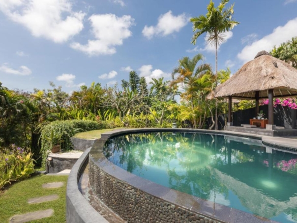 Resting within an exclusive residential community in a peaceful area just 10 minutes from the white sands and surf of Balangan Beach, this charming hilltop villa enjoys a well-designed 294 sqm of living space on 750 sqm of FREEHOLD land.