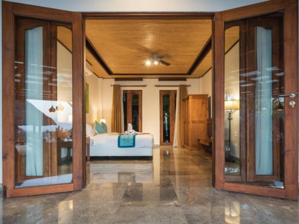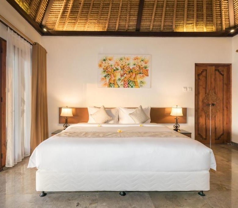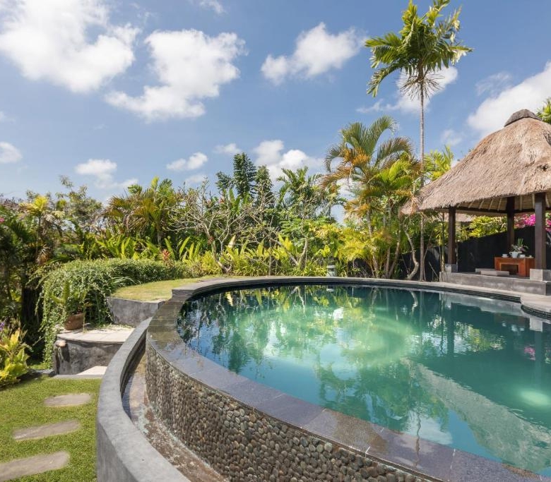 The property showcases the traditional Bali-style combined with modern, practical features. There are 3 fully furnished king-sized bedrooms at the villa, all with en-suite bathrooms. The property also has a Western standard kitchen, complemented by indoor and outdoor dining areas, complete with a stunning upper level lounge blessed with magnificent ocean views. A private pool is set amidst manicured gardens.