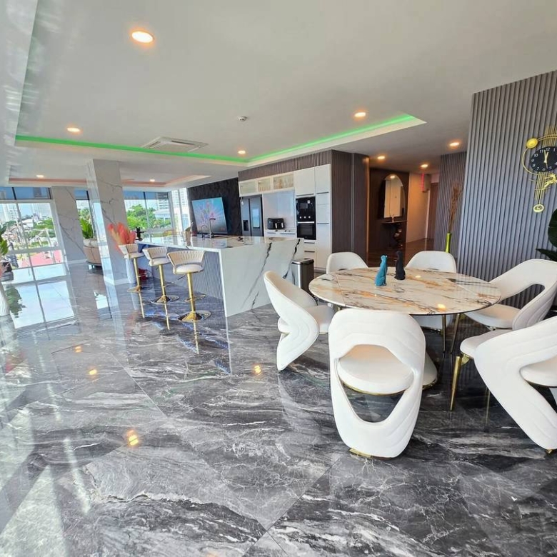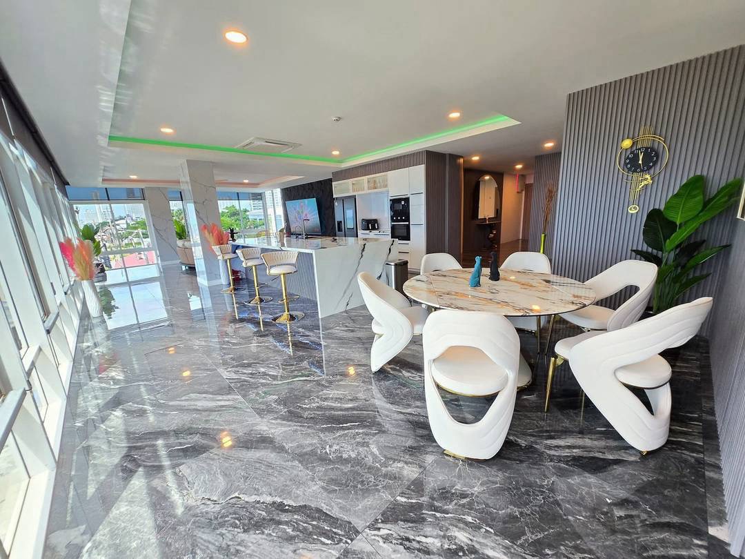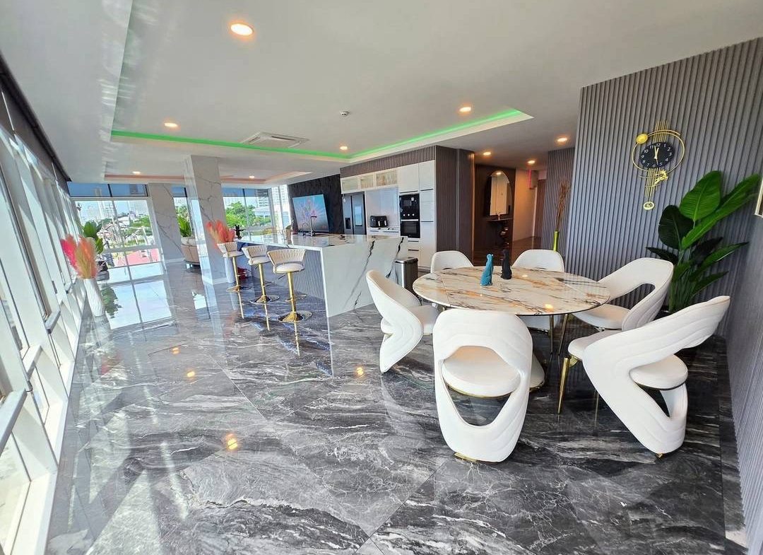 Live your dream life by the sea in this luxury 200 sqm beachfront residence located directly on Jomtien Beach Road, offering stunning panoramic sea views and a spacious modern layout.