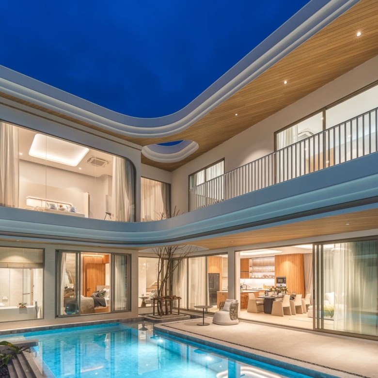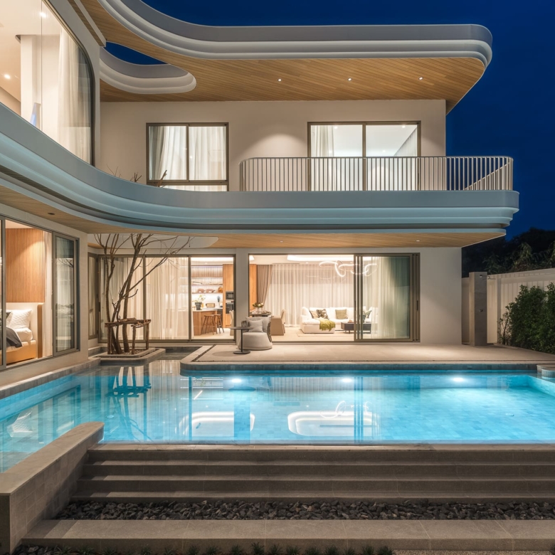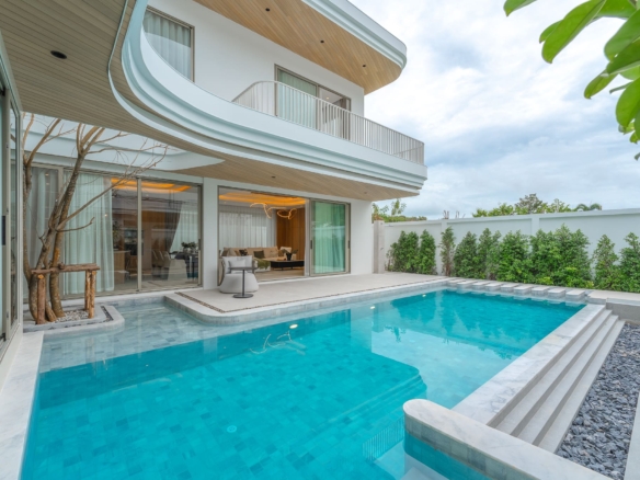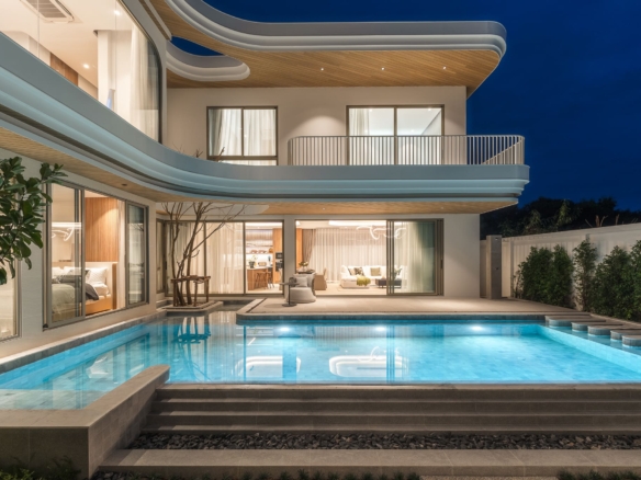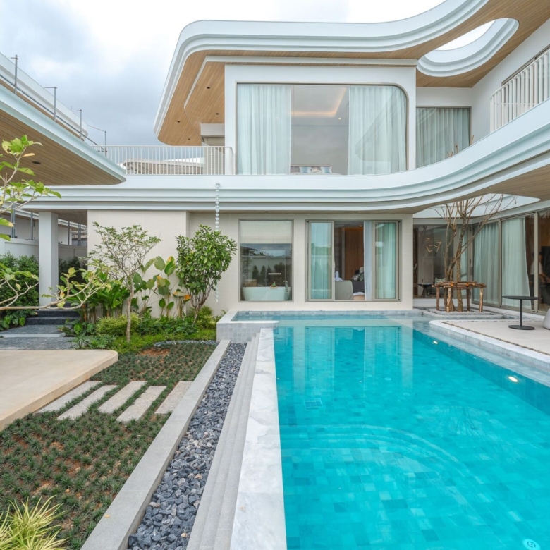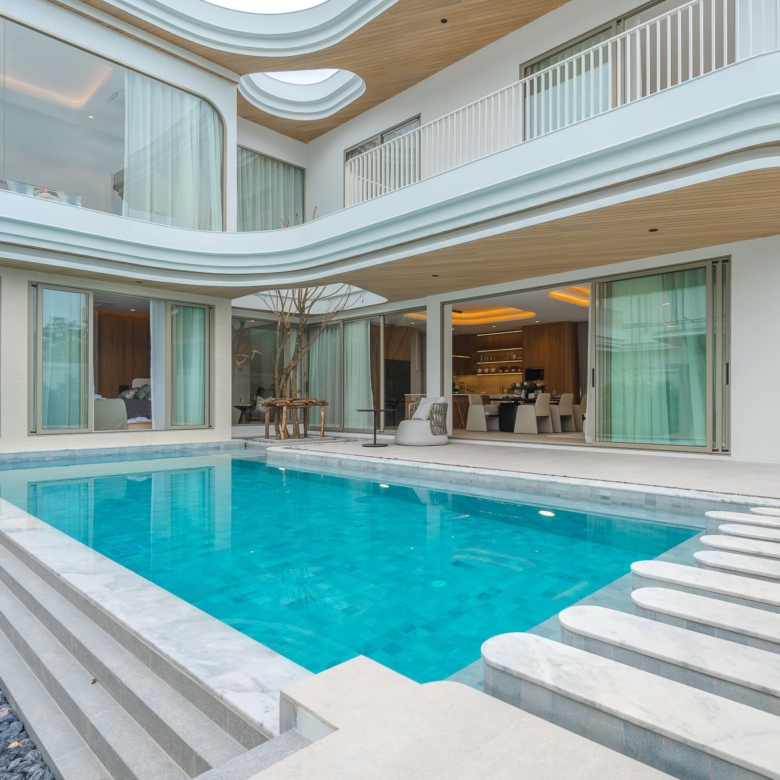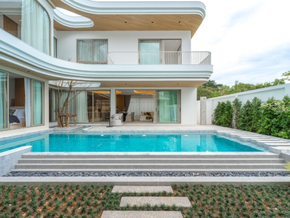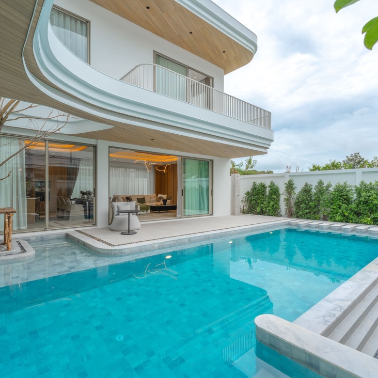 This brand new pool villa offers a modern tropical living experience in one of Rawai’s most sought-after residential areas. Spread over two floors with 467 sqm of usable area, the villa is thoughtfully designed for both comfort and function. Perfect as a private residence or investment property. The villa features a private swimming pool, outdoor sala, a lush garden, and a covered terrace, ideal for relaxing or entertaining. The interiors include a full Western kitchen, open-plan living area, and large windows that invite natural light throughout the home. A stylish staircase connects to the upper level where bedrooms enjoy pool and garden views, private balconies, and ensuite bathrooms. Property Features: Price: THB 27,900,000 – 35,400,000 Land Area: 394 – 460 SQ.M Usable Area: 467.75 – 544 SQ.M Bedrooms: 3 – 4 Bathrooms: 4 – 5 Storeys: 2 Swimming Pool: 3.7m x 9m, 4.85m x 11m Furniture Package: Available for THB 3,000,000 Ownership: Thai Freehold (via Company) or Leasehold CAM Fee: THB 15,000/month (paid yearly) Sinking Fund: THB 100,000 (one-time) Parking: Covered for 2 cars Status: Under Construction Pets: Allowed Land Title: Chanote Included Finishes: Swimming pool and landscape Built-in kitchen, wardrobes, and bathroom fittings Air-conditioning throughout Community Features: Gated community with 24-hour security CCTV Fitness center Reception Co-working space Wellness Room Sauna Onsen Communal garden Common area services included: security, garbage collection (3x/week), pool maintenance (weekly), pest control (2x/year), common electricity and landscaping Payment Terms: Reservation Deposit: 2% (non-refundable) Contract Signing (within 30 days): 28% Main Structure Completion: 15% Roof & Wall Completion: 15% System Completion (ceiling, electrical, plumbing): 15% Final Fixtures & Paint: 15% Ownership Transfer: 10% Location – Rawai, Phuket: Located just 2.5 km from Nai Harn Beach, the villa offers convenient access to beaches, cafes, and restaurants. BCIS School, HomePro, Tesco, and Villa Market are all within 10–15 minutes’ drive, making this property ideal for families or long-term residents. Contact ThaiEstate today to schedule a private viewing or request more information