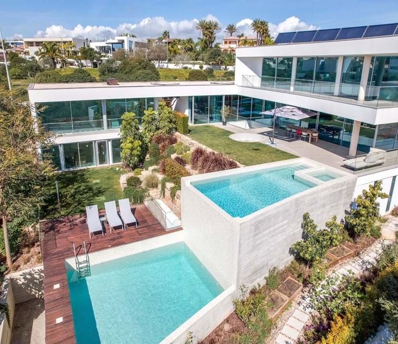 Modern luxury villa with breathtaking sea views for sale in Porto de Mós, Lagos, Algarve, Portugal. This extraordinary 6 bedroom contemporary property is situated in the idyllic Algarve region, offering a true seaside paradise.Nestled in one of the most coveted areas of Lagos, this villa is just a 5-minute walk from one of the region’s most spectacular beaches, providing a direct and invigorating connection to the ocean. The sea view will remain unobstructed due to the adjacent protected zone, ensuring no future construction will block your view.The villa’s location, away from the main road, ensures a serene environment free from vehicle noise, offering total privacy and discretion. This is a house where your intimacy is preserved, with no possibility of unwanted observations from strangers.The innovative design, featuring soft and elegant curves, creates a bright and spacious atmosphere in its four en suite bedrooms. Additionally, there is an independent flat with two en suite bedrooms, ideal for accommodating visitors in total comfort.The property offers breathtaking views of the sea, the swimming pool, the meticulously tended garden, and the stunning coastal landscapes and countryside. The ground floor includes a fully equipped open-space kitchen, a comfortable living room, and a modern office with a separate entrance.The outdoor area, with space for 12 people around the garden fireplace, features one of the swimming pools and a jacuzzi, perfect for those who enjoy an outdoor lifestyle. On level -1, you’ll find a playroom, outdoor patio, large storage area, and space set up for a cinema room and spa area. There is also a unique underground area that can be transformed into a wine cellar or music area.Notable features of this property include a state-of-the-art geothermal acclimatization system, two stunning cascading pools, a volcanic stone fireplace in the garden, and a contemporary American style. Additional conveniences include an automatic irrigation system, solar panels, two private pools, a spacious terrace, underfloor heating, and spectacular sea views. Private parking completes the convenience of this unique residence.The impressive garden, created by the renowned landscaping company Jardim Vista and detailed by Richard Wescott, is a true masterpiece. Fragrant with flowers and fruit, the garden changes color throughout the different seasons and features a majestic 200-year-old olive tree. It is a place of unrivaled natural beauty, making this property an exceptional find.