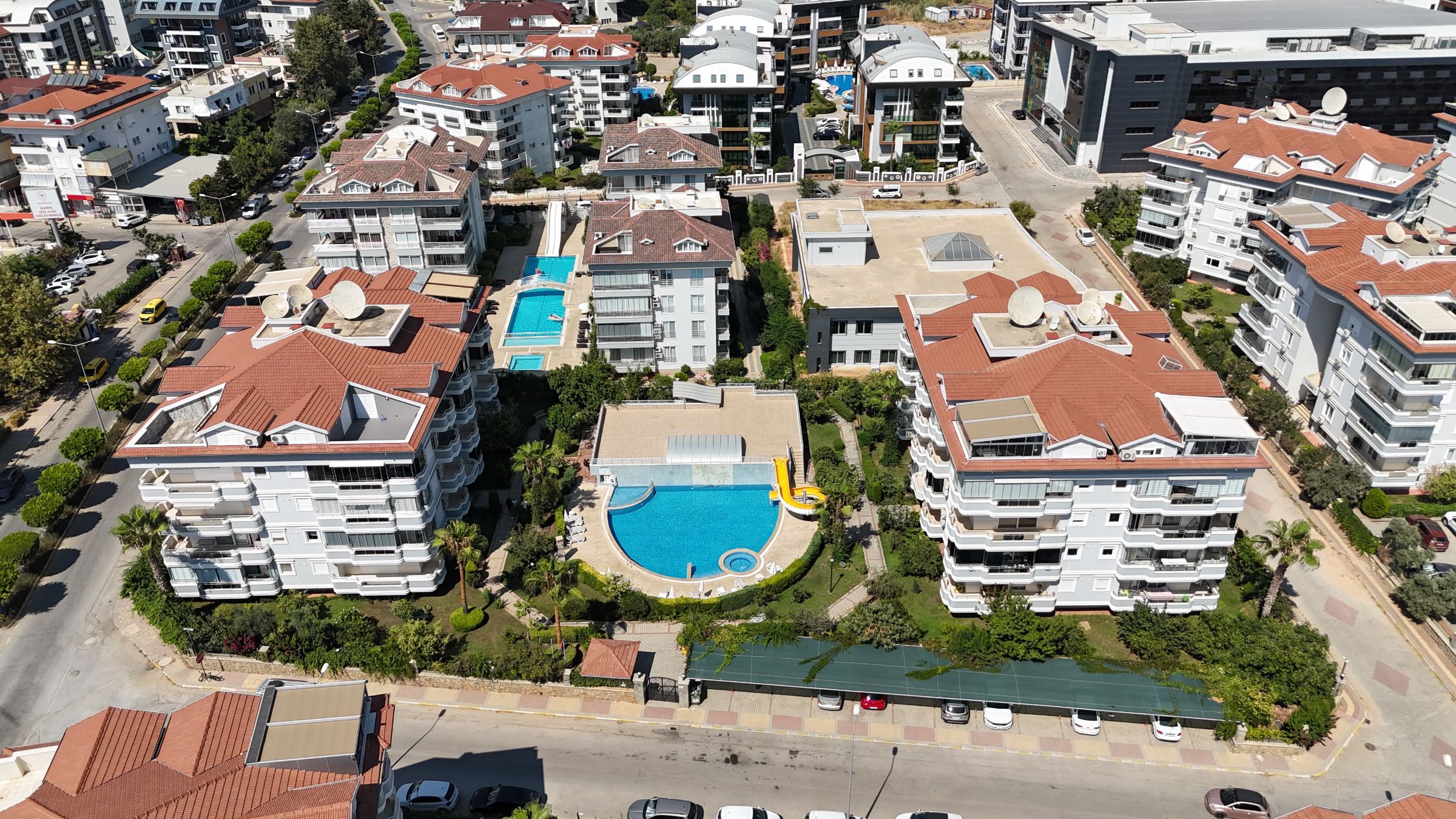 Step into a world of modern elegance and coastal charm with this exceptional 2-bedroom, 110 m² apartment. Perfectly located just 1000 meters from the serene shoreline, this residence offers an unparalleled blend of comfort and convenience. The apartment boasts a thoughtful layout with an American-style kitchen and two bathrooms, including a private en-suite in the master bedroom.Key Features:- Spacious 2+1 layout with a modern American kitchen- Prime location just 1000 meters from the beach- Stunning city, pool, and street views- North-west facing for optimal natural lightWhat sets this property apart is not just its proximity to the beach, but also its access to a wealth of amenities. Residents can indulge in both open and enclosed swimming pools, a state-of-the-art fitness center, a relaxing sauna, and a fun-filled aquapark. The beautifully landscaped garden offers a tranquil retreat, while the secure entry system and on-site management provide peace of mind.Additional Amenities:- Open and closed swimming pools- Sauna, fitness center, and aquapark- Beautifully landscaped garden- Secure entry with intercom and coded access- Onsite management and parking facilitiesConstructed in 2009, the building features four floors, an elevator for ease of access, and a dedicated concierge service. With its stylish, unfurnished interiors, this apartment offers the perfect blank canvas for you to create your dream home. Positioned in a vibrant neighborhood, you’ll enjoy easy access to local shops, dining, and entertainment, making it a must-have address for anyone seeking a dynamic yet peaceful lifestyle.Don’t miss the opportunity to own a piece of coastal paradise. Act now to secure this exceptional property and experience the perfect balance of city convenience and beachside tranquility. With its unique blend of location, features, and amenities, this apartment is not just a place to live—it’s a lifestyle choice. Contact us today to learn more about making this property your new home.