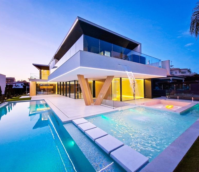 This five bedroom contemporary villa for sale is located in the sought-after area of Galé, just a short 500-metre walk to the east side of Praia Manuel Lourenço. Spanning 1,000m2, this property features an internal construction area of 780m2 with expansive terraces, all situated on a generous 900m2 plot, it’s anticipated to be completed by the end of February 2024.The basement will feature a spa, gym, cinema room, games room with a bar, and a chill-out room for massages. Additionally, a 5-car garage, cascading water features visible through glass walls, and technical rooms for heating systems and water storage add to the convenience.The ground floor showcases a Portuguese calçada driveway with a graduated slope for sports cars, a 100m2 living room with a dining area and a feature fireplace, a fully equipped kitchen with a central island and pantry, and a garden with a pool and water mirror.There are two bedrooms on the ground floor, both with en-suite bathrooms and their own private terraces.Moving to the first floor, there are three further bedrooms: The master suite boasts a walk-in wardrobe, bathroom with a walk-in shower and bathtub, a private terrace with a Jacuzzi, bar, and lounge area overlooking the garden. This room also comes with triple glazed windows with blinds inside the glass to provide enhanced privacy.The other two bedrooms are situated away from the master and also come with their own private bathrooms, built-in wardrobes and terraces.This property boasts two exclusive lifts: a stylish main lift with glass walls, going from the basement to the roof terrace, and a discreet service lift located at the back, connecting the basement to the first floor.The top floor offers a rooftop terrace with panoramic views, a gas fire pit, and artificial grass, complemented by solar panels for sustainable energy production.In terms of design and comfort, the property incorporates climate-controlled glass with lamination, ensuring privacy from outside while preserving breathtaking external views. Centralised air-conditioning, a domotics intelligent home system programmable via mobile phone, and CCTV cameras contribute to the seamless living experience. Underfloor heating with a heat pump, thermal insulation ranging from 6cm to 8cm, and photovoltaic electric-producing solar panels further enhance energy efficiency.This villa combines luxury, technology, and comfort, offering an unparalleled living experience on the Algarve coast.Galé is a charming coastal area nestled within the picturesque Algarve region of Portugal, renowned for its stunning beaches and serene landscapes. The centre of Guia is just a short 11 minute drive from the property and is known for its charming ambiance and traditional Portuguese architecture. Famous for its delicious chicken piri-piri, the town offers a blend of cultural richness and coastal beauty.