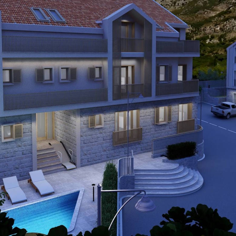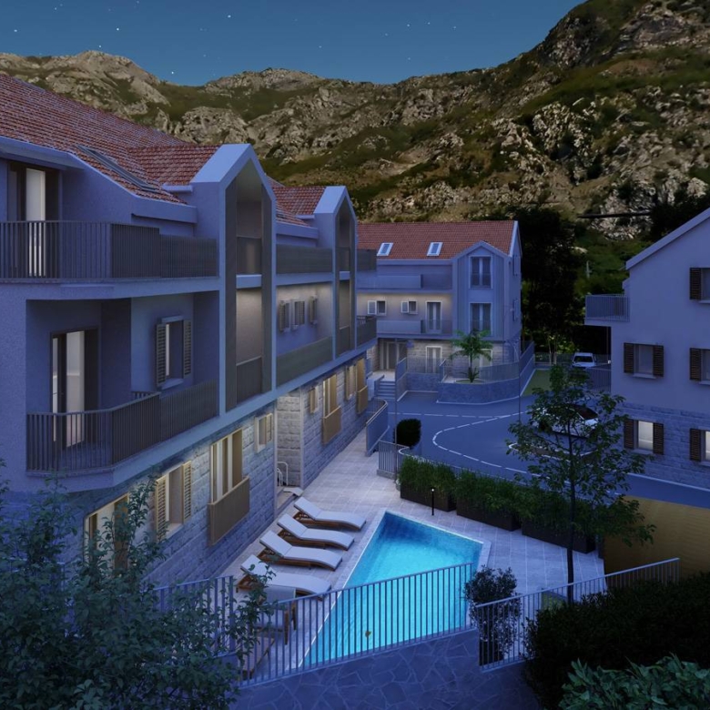 Embark on a modern elegance and unparalleled comfort journey with the exquisite “Rhizon Trinity” residential complex in Risan, nestled within the captivating Bay of Kotor in the Kotor municipality. Immerse yourself in the rich history and allure of Risan, one of the oldest settlements in the Bay of Kotor, known for its Illyrian state’s legacy as a craft, maritime, and trade center. This ancient town, a haven for history and archaeology enthusiasts, welcomes a new era of sophisticated living with the contemporary “Rhizon Trinity” residential complex.Situated in a pristine natural setting in hills above the sea, offering breathtaking views of the Montenegrin coast’s most beautiful bay, “Rhizon Trinity” comprises three residential buildings, each spanning the ground floor, first floor, and loft (attic). The expansive 2,240m² plot hosts these buildings, complemented by a convenient parking lot. The complex effortlessly merges modern living with the tranquility of nature, creating an ideal haven for comfortable and luxurious living.The façades of the buildings exhibit a harmonious blend of tradition and modernity, featuring stone cladding on the first floor and wooden slats framing dormers and terraces. This combination lends a welcoming touch to the complex, ensuring a warm and inviting ambiance. The “Rhizon Trinity” complex is a testament to quality and functionality, boasting modern technical equipment with full automation possibilities. The use of high-quality materials and surface treatments, coupled with preserved green areas, adds to the allure of this exclusive residence.Explore the amenities that “Rhizon Trinity” offers, including a swimming pool, sauna, smart home system, children’s corner, and more, providing residents with a luxurious living experience. The complex features a joint modern reception on the first floor, creating community among its residents.The apartments within the complex are designed with energy efficiency in mind, featuring a smart home system that allows centralized control and automation of various parameters. With four flats on each floor, the optimal ratio ensures privacy and tranquility for residents. The “open space” concept unites the living room, dining room, and kitchen, creating a spacious and modern living environment.Enjoy the maximally landscaped courtyard with facilities for all age groups, enhancing the quality of life within the complex. A dedicated SPA&Wellness center with an exclusive swimming pool and sauna awaits residents in front of the complex. Additional amenities include seating areas and a children’s playground equipped with various entertainment, ensuring a comfortable and pleasant life within the complex.Discover the available apartments at Building I and Building II, each offering a unique blend of space, style, and affordability:Building I:Ground floor, apartment nr.1, 49.12m², PRICE 191,568.00 (sea view)Ground floor, apartment nr.2, 54.27m², PRICE 211,653.00€ (sea view)Ground floor, apartment nr.3, 54,27m², PRICE 211,653.00€ (sea view)Ground floor, apartment nr.4, 49.33m² PRICE 192,387.00€First floor, apartment nr.5, 59.22m², PRICE 136,880.00€ (sea view)First floor, apartment nr.6, 54.27m², PRICE 217,080.00€ (sea view)First floor, apartment nr.7, 54.27m², PRICE 217,080.00€ (sea view)First floor, apartment nr.8, 59.15m², PRICE 236,600.00€ (sea view)Loft, apartment nr.9, 57.67m²,RESERVEDLoft, apartment nr.10, 52.99m²,RESERVEDLoft, apartment nr.11, 52.51m², PRICE 215,291.00€Loft, apartment nr.12, 58.04m², PRICE 237,964.00€Building II:Ground floor, apartment nr.1, 49.12m², PRICE 191,568.00 (sea view)Ground floor, apartment nr.2, 54.27m², PRICE 211,653.00€ (sea view)Ground floor, apartment nr.3, 54.27m², PRICE 211,653.00€ (sea view)Ground floor, apartment nr.4, 49.33m², PRICE 192,387.00€First floor, apartment nr.5, 59.09m², PRICE 236,600.00€ (sea view)First floor, apartment nr.6, 54.27m², PRICE 217,080.00€First floor, apartment nr.7, 54.27m², PRICE 217,080.00€ (sea view)First floor, apartment nr.8, 59.02m², PRICE 236,080.00€ (sea view)Loft, apartment nr.9, 57.22m², PRICE 236,602.00€ (sea view)Loft, apartment nr.10, 52.99m², PRICE 217,259.00€Loft, apartment nr.11, 55.51m², PRICE 215,291.00€ (sea view)Loft, apartment nr.12, 57.91m², RESERVEDParking spaces are available in the complex for the price of 20,000.00€.Positioned less than 20km from Kotor Old Town, 25km from International Airport Tivat, and yacht marina Porto Montenegro, “Rhizon Trinity” is strategically located to offer accessibility to both historical sites and modern conveniences.If this opportunity resonates with you, don’t hesitate to contact us for more information. Elevate your lifestyle with the unparalleled charm of “Rhizon Trinity” in the breathtaking Bay of Kotor.