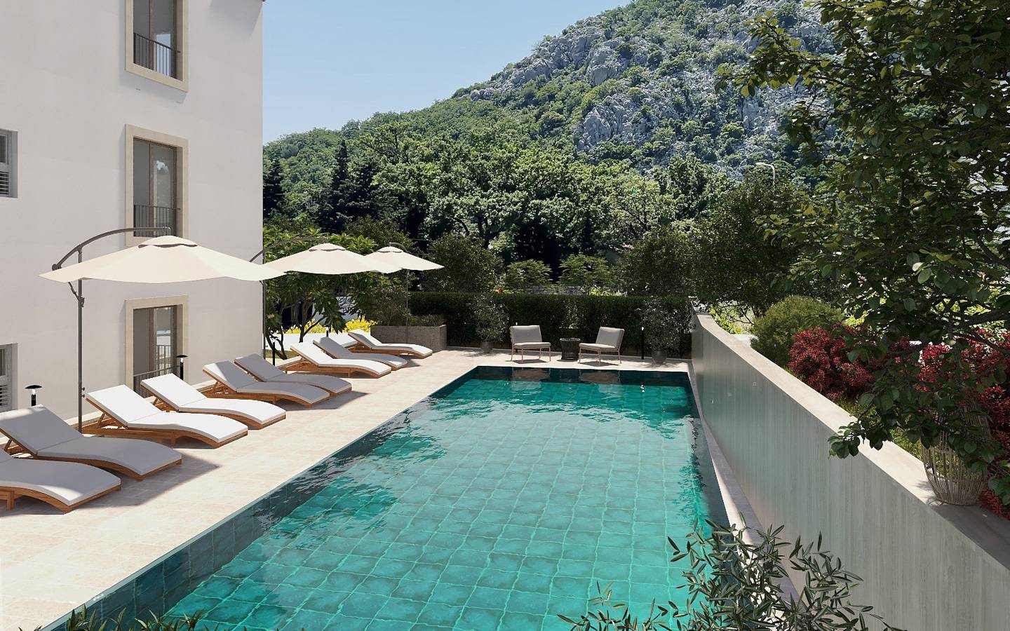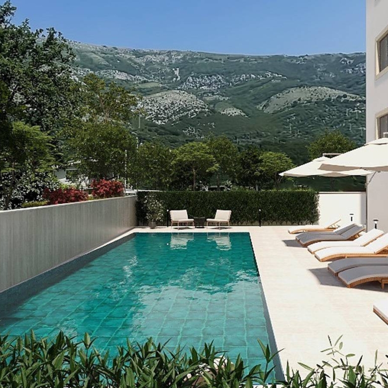 Welcome to the epitome of modern living in the heart of Sutomore! Nestled within the renowned “Torre a Cona” residential building in the Bar municipality, these contemporary one-bedroom apartments redefine luxury and comfort. Sutomore, celebrated for its 1.6km stretch of sandy beach and crystal-clear blue waters, now hosts a residential gem that combines convenience, style, and sophistication effortlessly.Situated on a 1,170m2 plot along the main road connecting Bar and Podgorica, the “Torre a Cona” building stands out with its Mediterranean architectural flair. Boasting a basement garage and four floors, this residence is a harmonious blend of form and function. The façade, adorned with stone cladding and an architecturally recessed top floor, imparts a unique charm, making it a distinctive presence in the surroundings.Inside, the apartments reflect a commitment to modern living. Designed to cater to the evolving preferences of discerning clients, these spaces feature simple lines, noble materials, and warm parquet colors. The interiors exude sophistication and charm, surprising residents with an elegant ambiance. Moreover, each apartment has a smart home system catering to those who expect nothing less than cutting-edge technology in their living spaces.The building’s thoughtful design extends to shared amenities, including a reception hall at the entrance and 24-hour maintenance services. The eight one-bedroom apartments, two on each floor, are meticulously crafted to include a living room, hallway, kitchen, and a separate bedroom with a bathroom. The top-floor apartments boast access to a stunning roof terrace, complete with a jacuzzi, wooden partitions, and lush greenery—a perfect oasis for relaxation.The building features a garden with a swimming pool for a refreshing escape on hot summer days. On the first floor, residents can indulge in the SPA&Wellness Center, offering a swimming pool, sauna, and Turkish bath for ultimate relaxation and recreation.Discover the available one-bedroom apartments, each offering a unique blend of space and style:A1, ground floor, 55.52m² + terrace 23.55m², PRICE 167,902,00€A2, ground floor, 62.63m² + terrace 41.81m², PRICE 204,648,00€A4, first floor, 55.52m², price 144,352,00€A8, second floor, 55.52m², price 144,352,00€Conveniently located just 38km from Podgorica International Airport and 55km from Tivat International Airport and Porto Montenegro, these apartments offer accessibility to both local and international destinations.Contact us for additional information on this spacious and well-positioned property. Elevate your lifestyle with the unparalleled charm of the “Torre a Cona” apartments in Sutomore.
