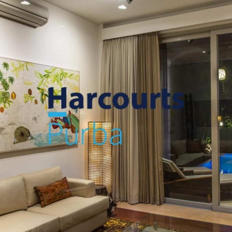 Bali’s Finest Residence lies within a very private, security-controlled, walled estate, with a land size of 1,610 square meters. It includes a private driveway access into a multi-vehicle garage. The garage has a private lift for shopping provisions, luggage, and handicapped guests. The main residence encompasses 900 square meters indoor living space, with an additional 300 square meters of external marble-floor terraces and balconies. (These numbers do not include the butler’s residence and the garage.)