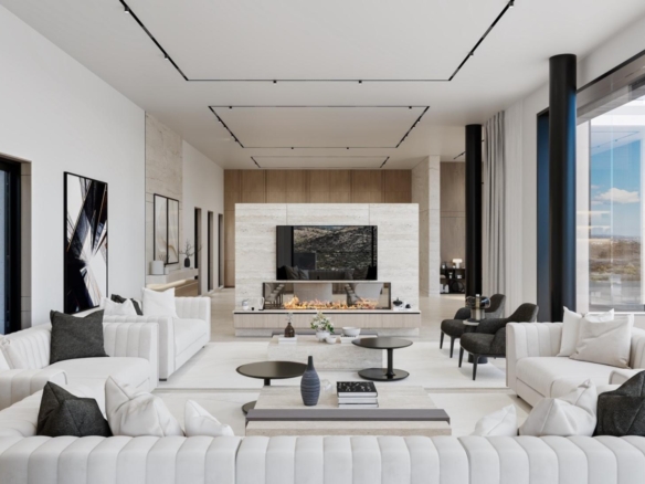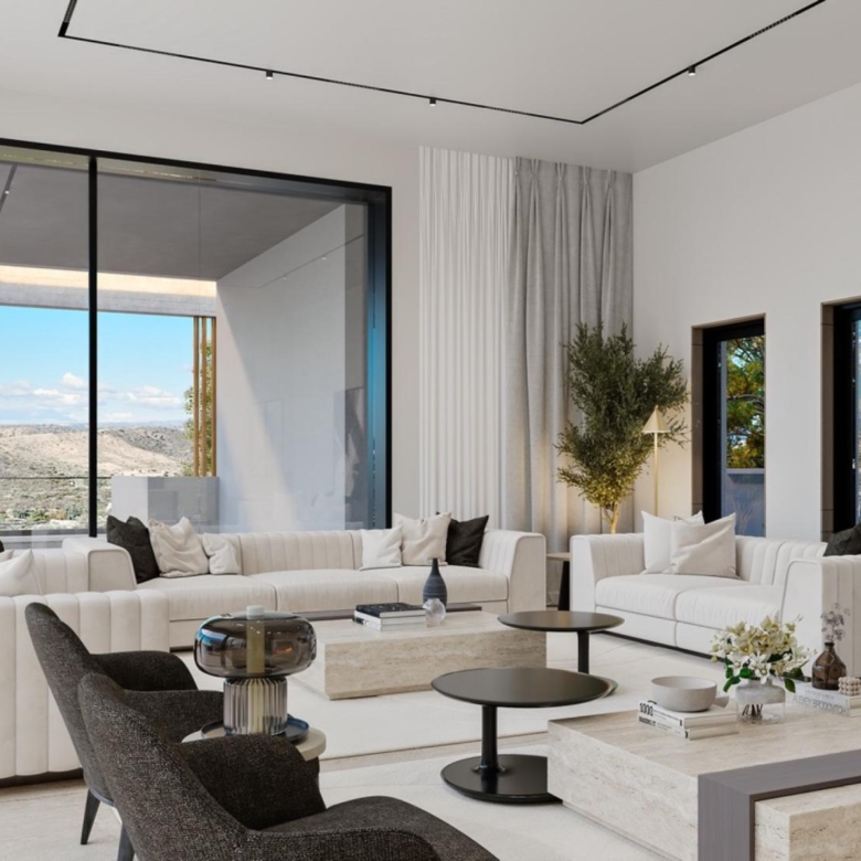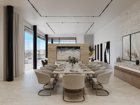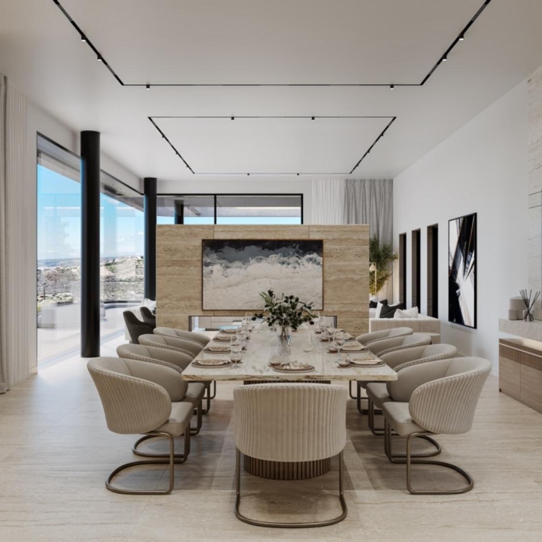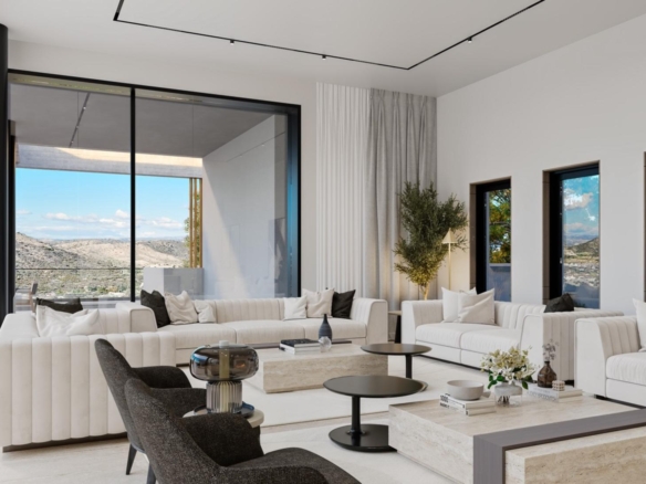This magnificent 4 bedroom villa is nestled on a sprawling 1,622 sq. m. plot, offering captivating mountain views. Located in the prestigious Opalia Hills suburb of Limassol, the villa resides in a serene neighborhood of modern luxury homes and natural beauty, just 10 minutes from the city and 15 minutes from pristine beaches. The villa features two floors connected by an elegant staircase and lift. The open-plan ground floor boasts a modern, spacious living room, dining area, kitchen, kitchenette, guest toilet, and three grand bedrooms with en-suite bathrooms. The upper floor houses a large bedroom and access to a roof garden, the perfect spot to savor the spectacular mountain and sea views. Experience unmatched luxury and tranquility in this exquisite retreat.