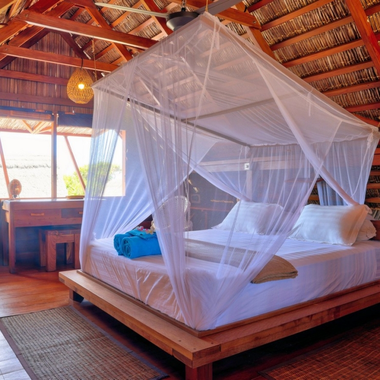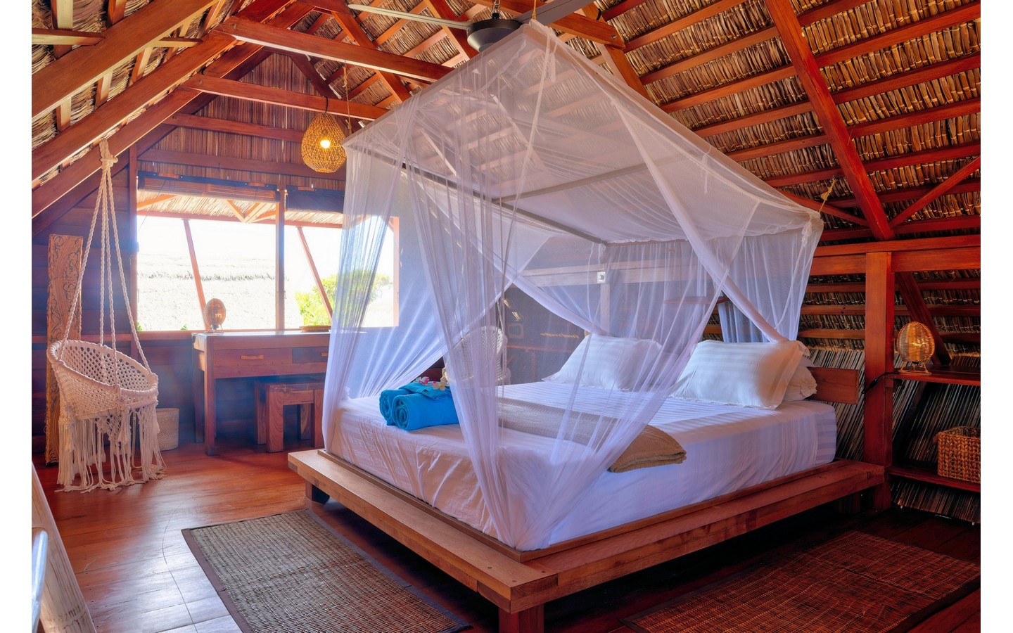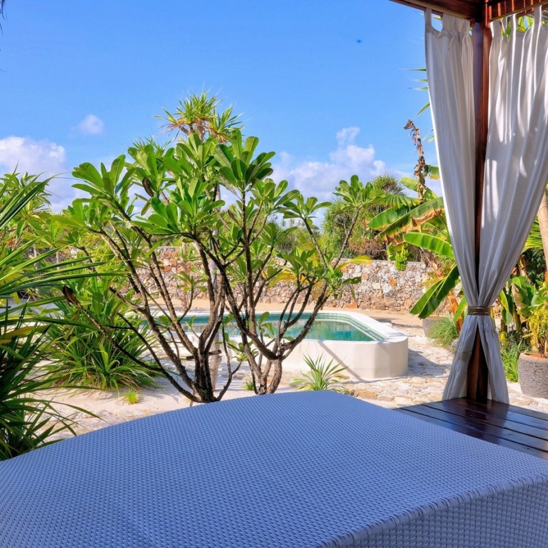Each of the four traditional-style bungalows offers a private terrace, open-air shower, large dressing room, and fan, comfortably accommodating up to four guests per bungalow. Built in 2019, the resort features a triangle-shaped swimming pool that blends seamlessly with the natural surroundings. The property also includes a pantry kitchen and off-site parking, with water supplied from a drilled well on the property, ensuring excellent water quality.